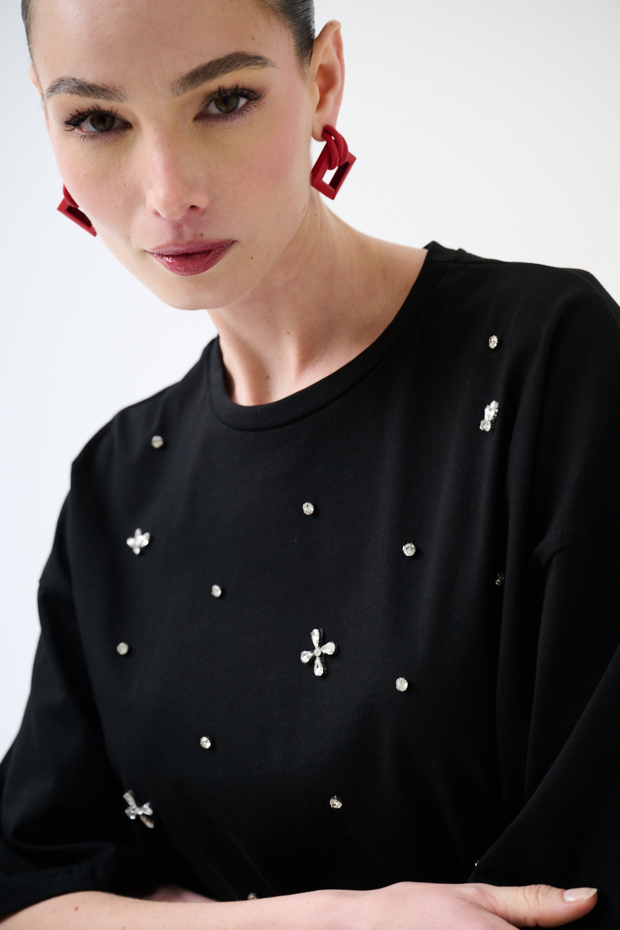 T-SHIRT CON APPLICAZIONE CASTONI NERO