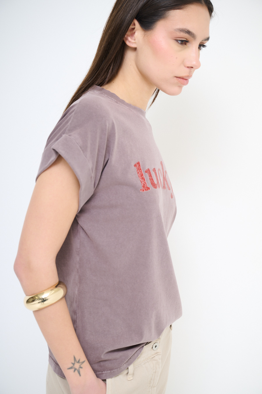T-SHIRT CON STAMPA LUCKY EFFETTO VINTAGE