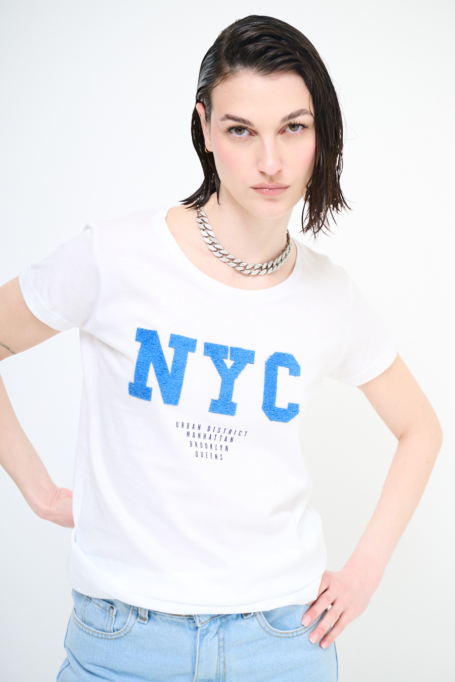 Basic crew neck T-shirt with bold 'NYC' print