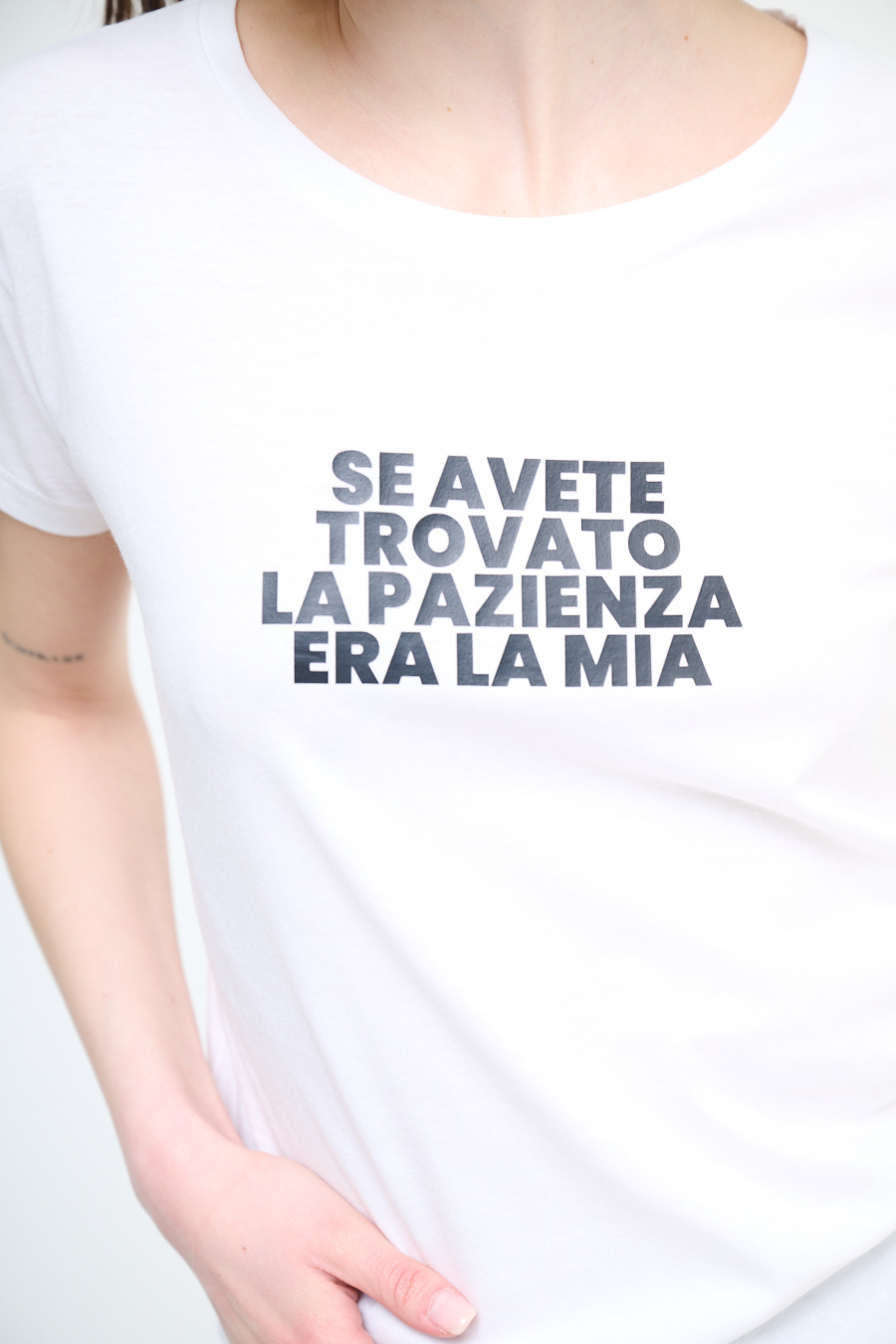 T-SHIRT CON STAMPA PAZIENZA BIANCO