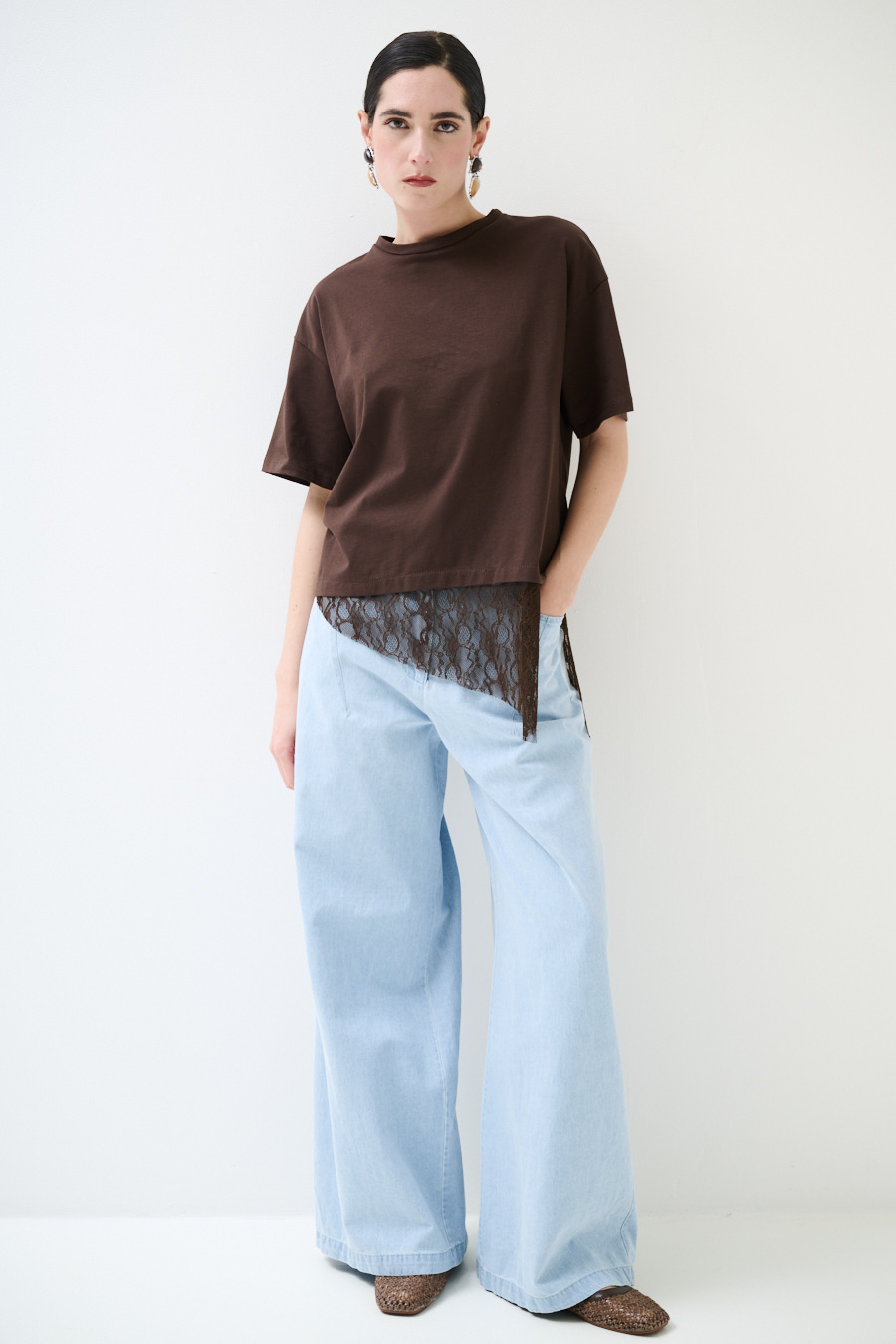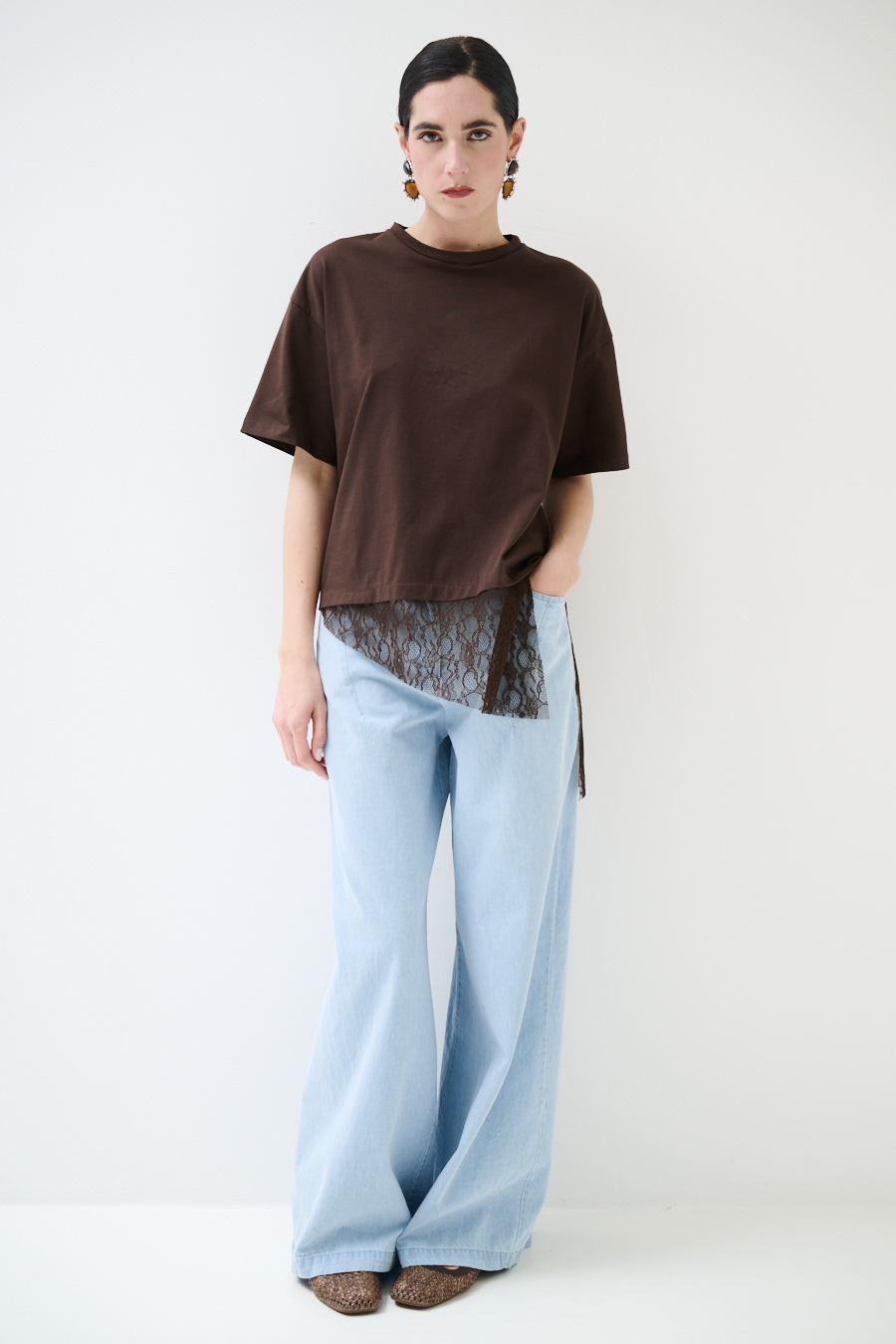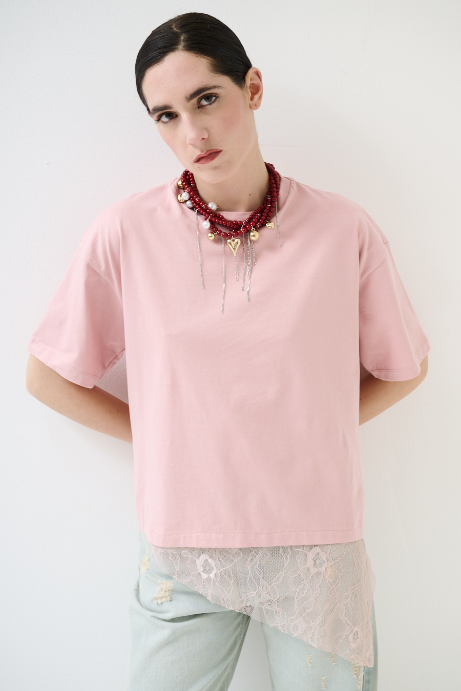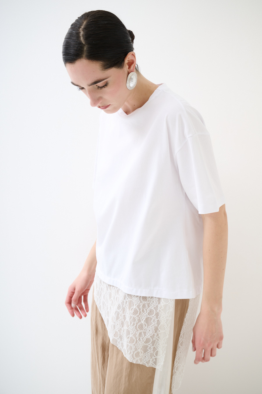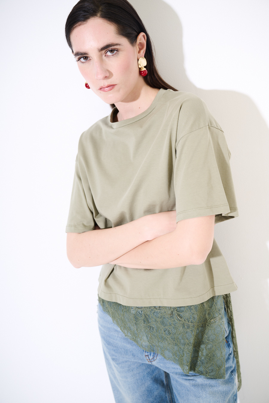 T-SHIRT COTONE CON PIZZO ASIMMETRICO