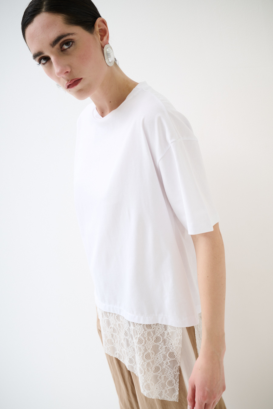 T-SHIRT COTONE CON PIZZO ASIMMETRICO BIANCO