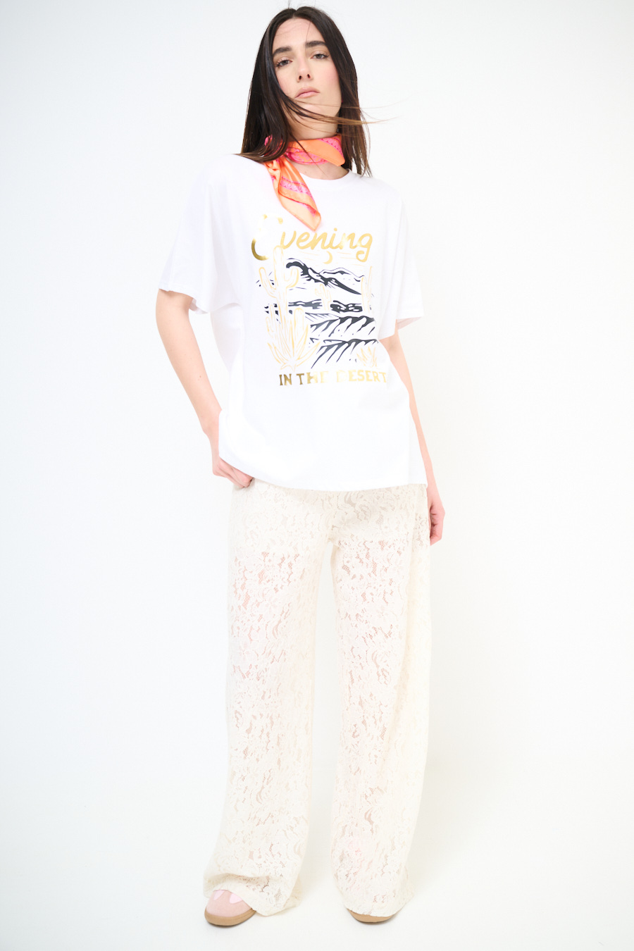 Grace T-shirt with no armhole seams and box fit and Desert Gold print