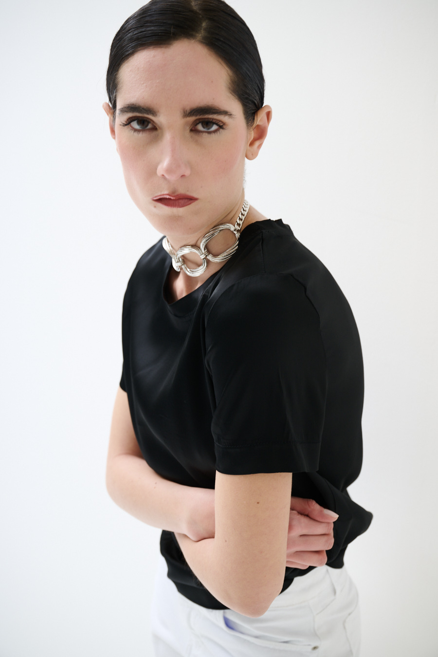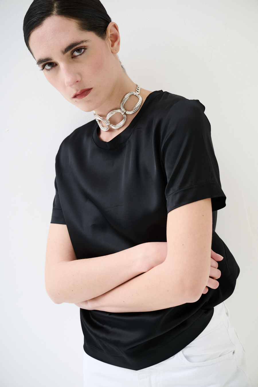 T-SHIRT IN RASO VISCOSA PARICOLLO NERO