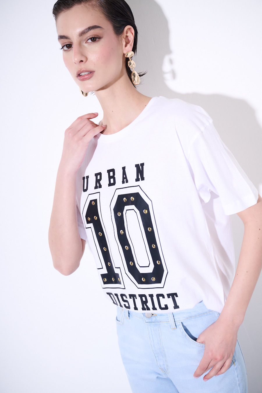 Oversized T-shirt with Urban 10 print and studs