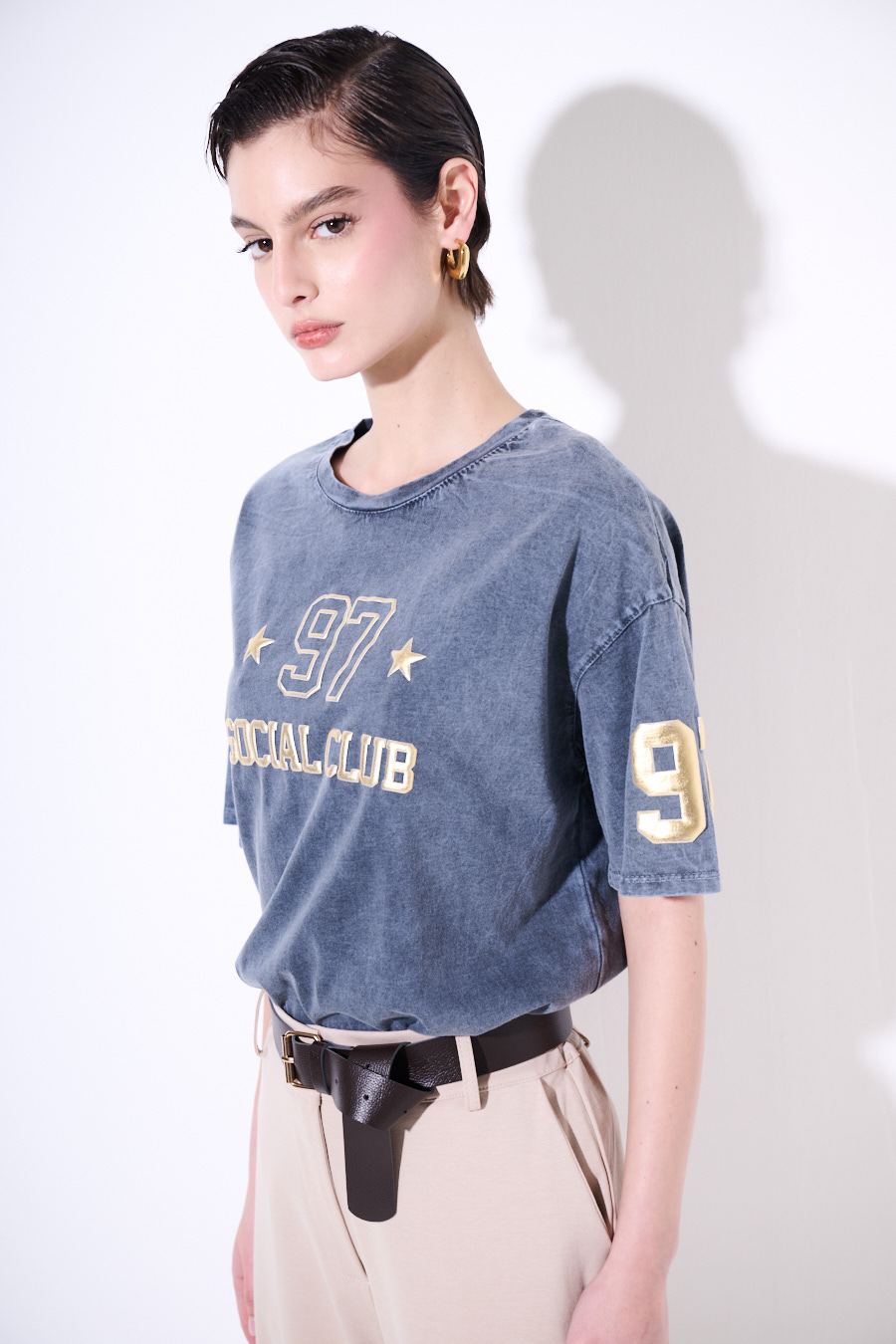 Basic T-shirt with vintage effect and raised '97 social club' print and numbers on the sleeves