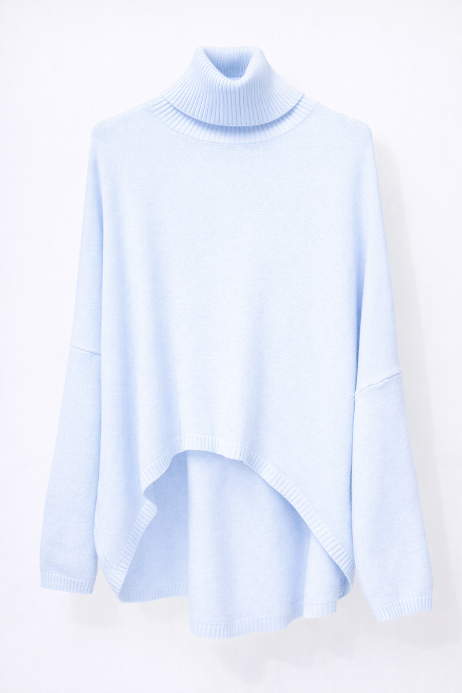 MAGLIA IN VISCOSA CON COLLO ALTO A COSTE CELESTE