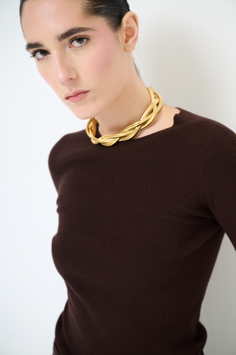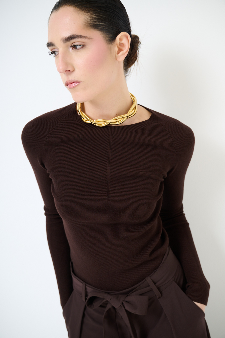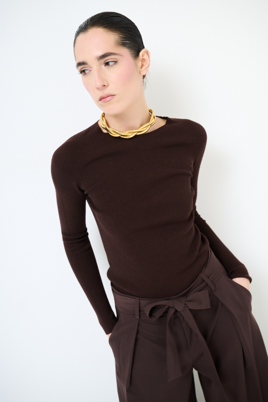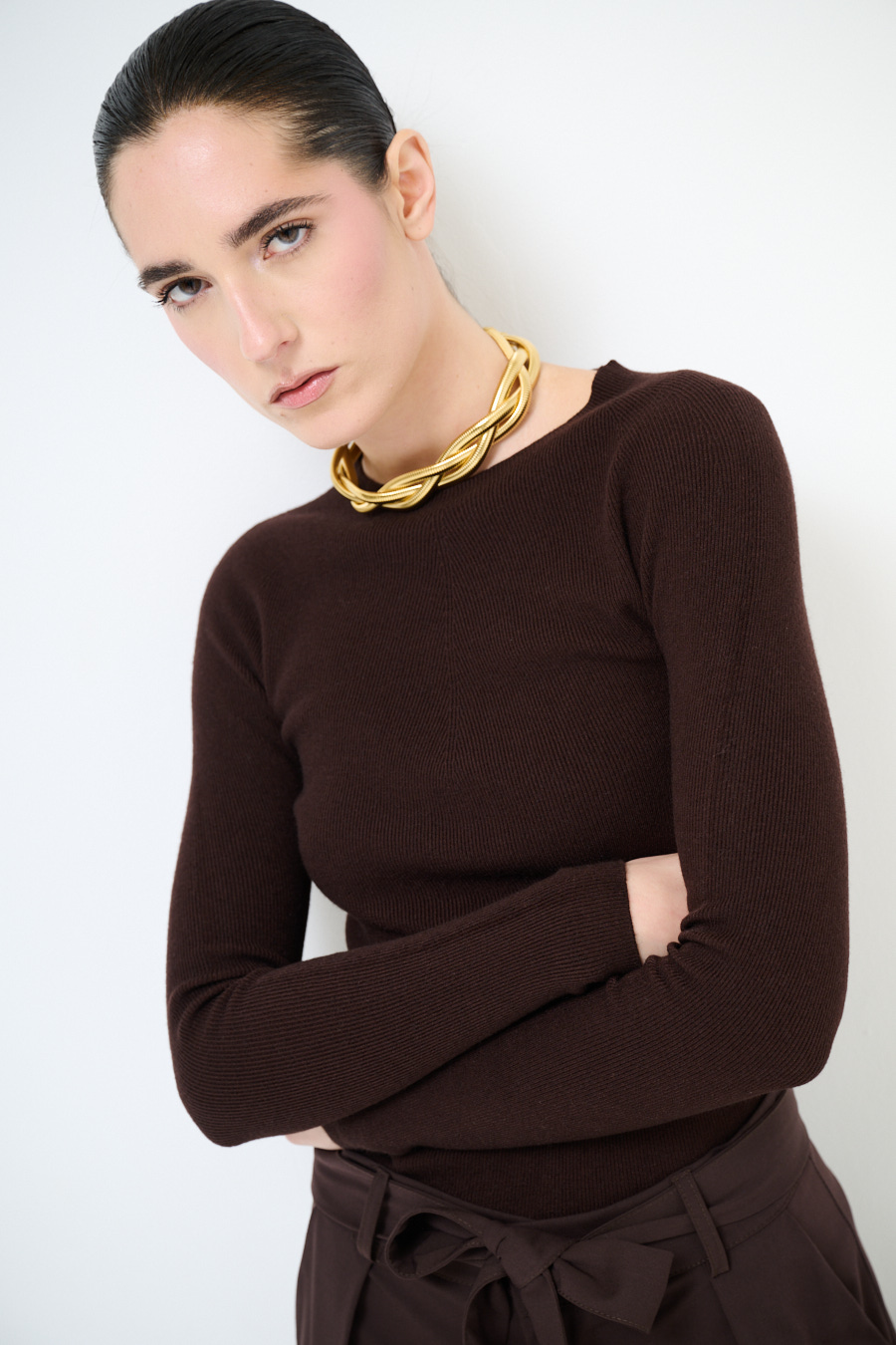 Maglia paricollo in viscosa con manica lunga, a costine sottili