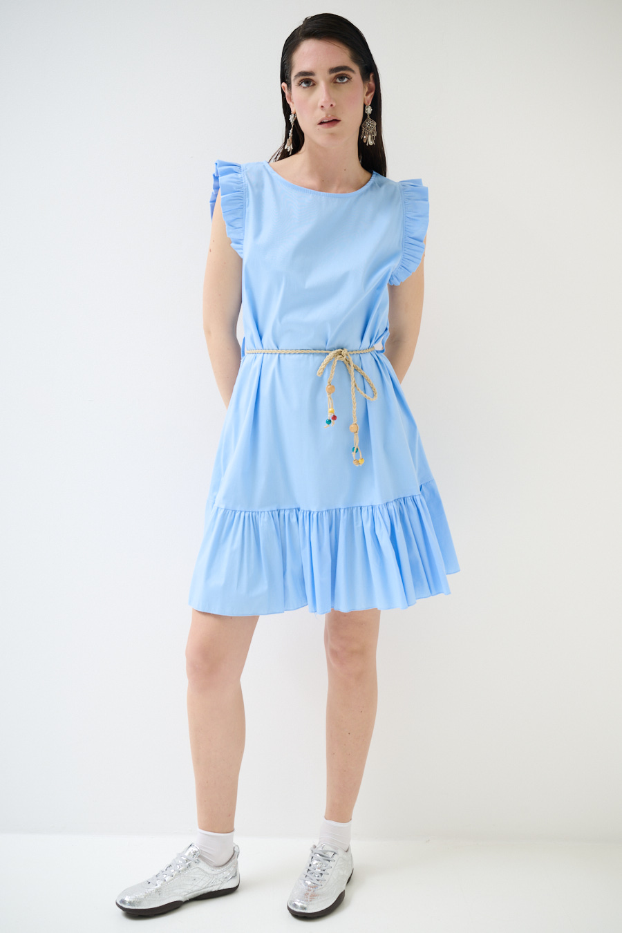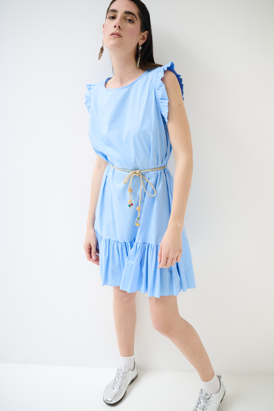 ABITO CORTO CON BALZA SUL FONDO CELESTE