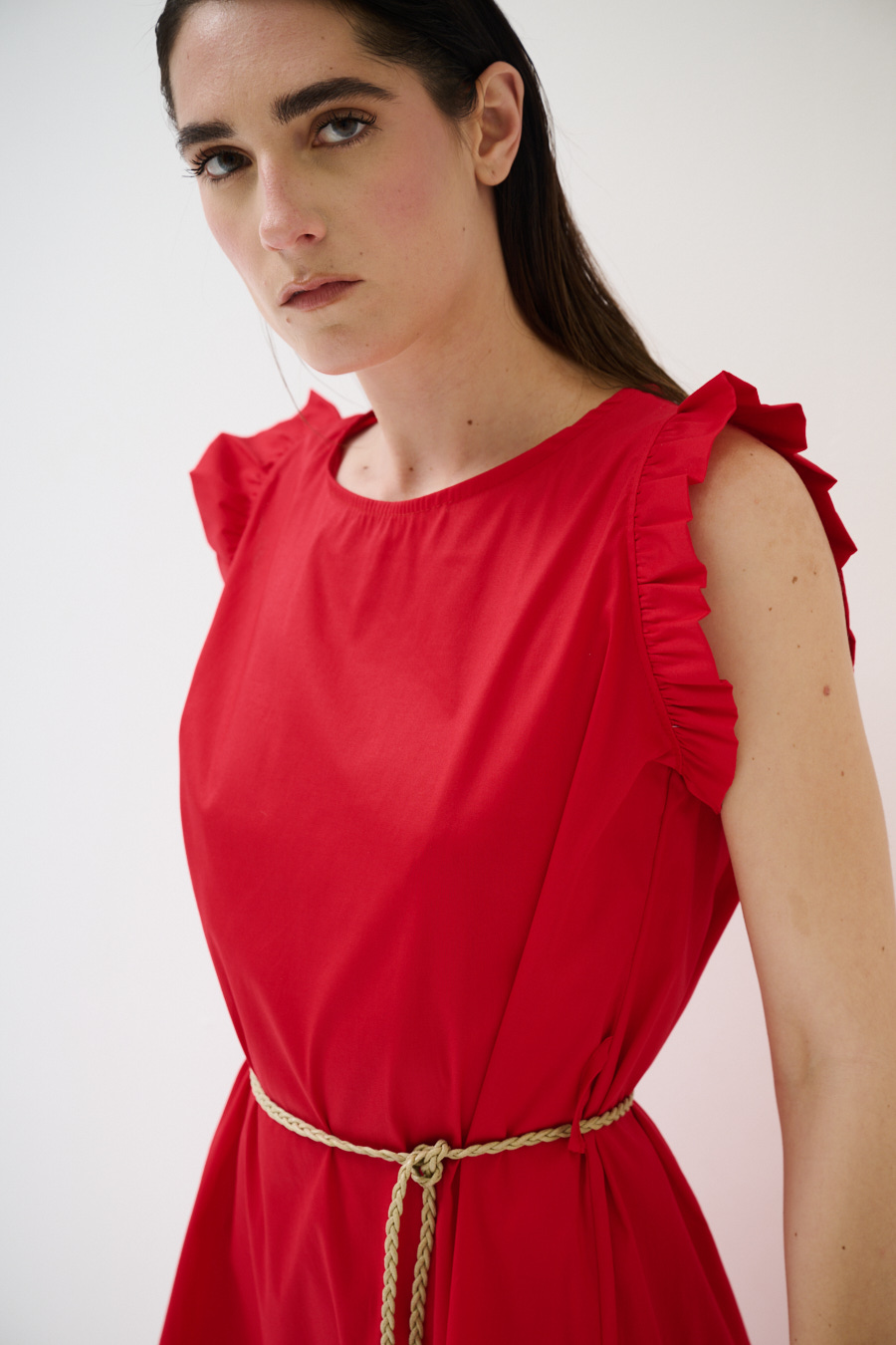 ABITO CORTO CON BALZA SUL FONDO ROSSO
