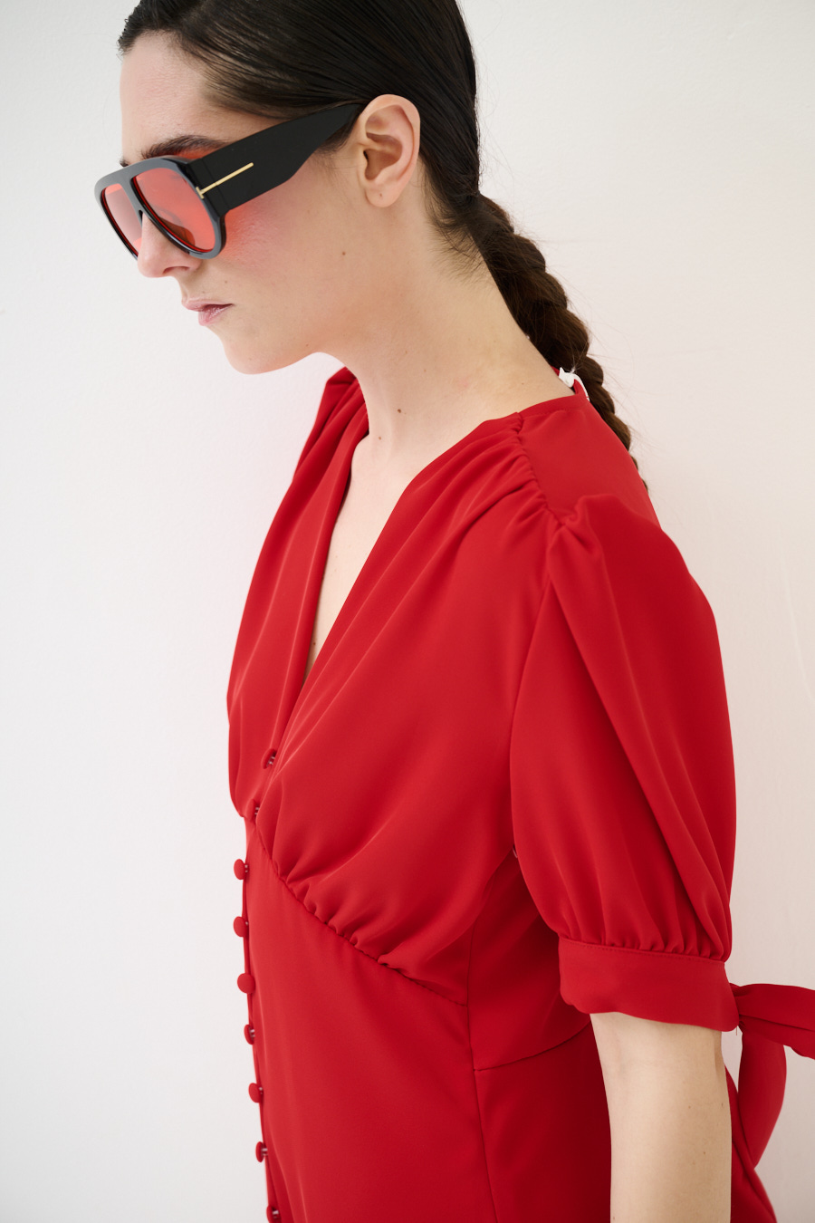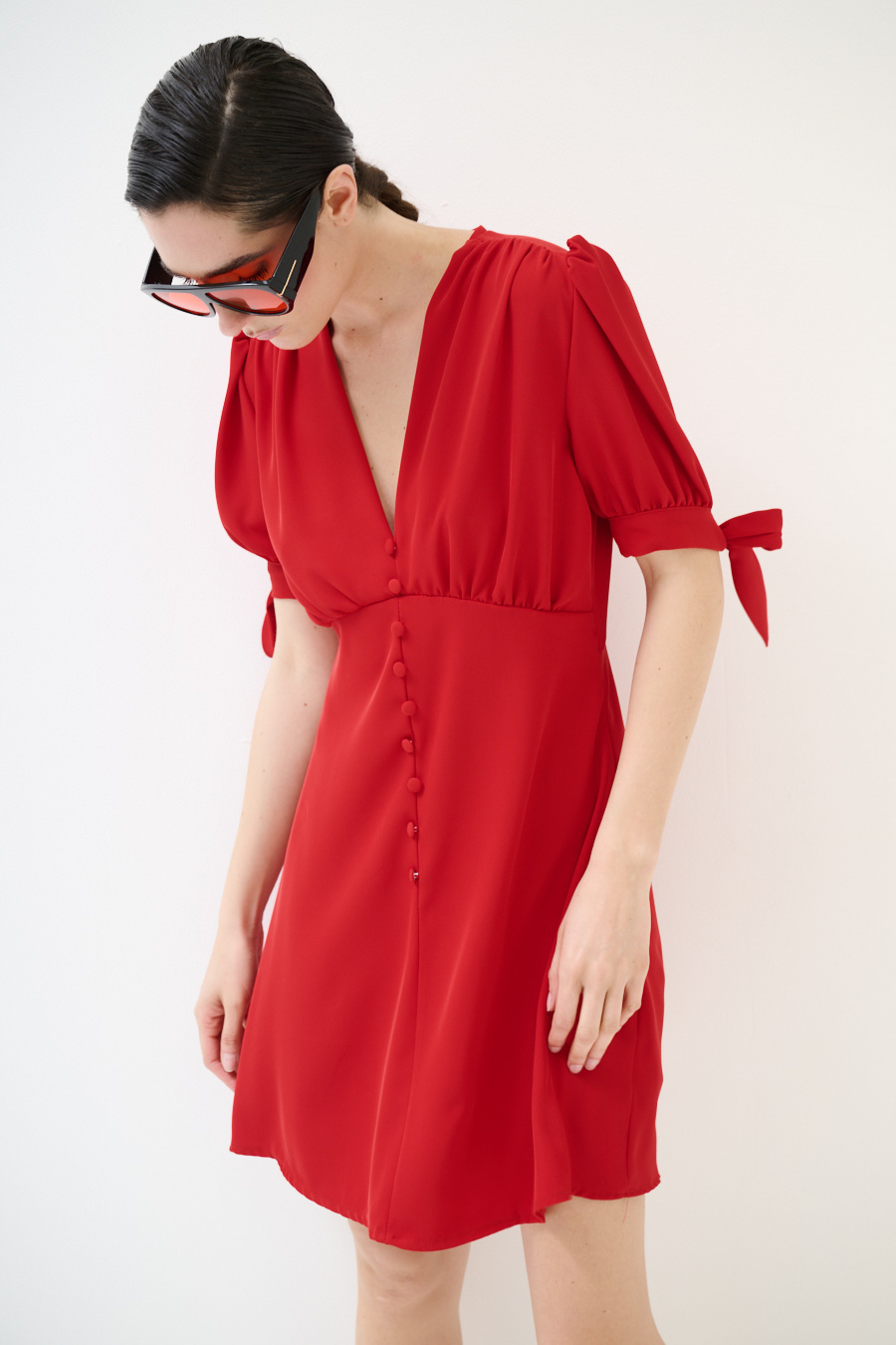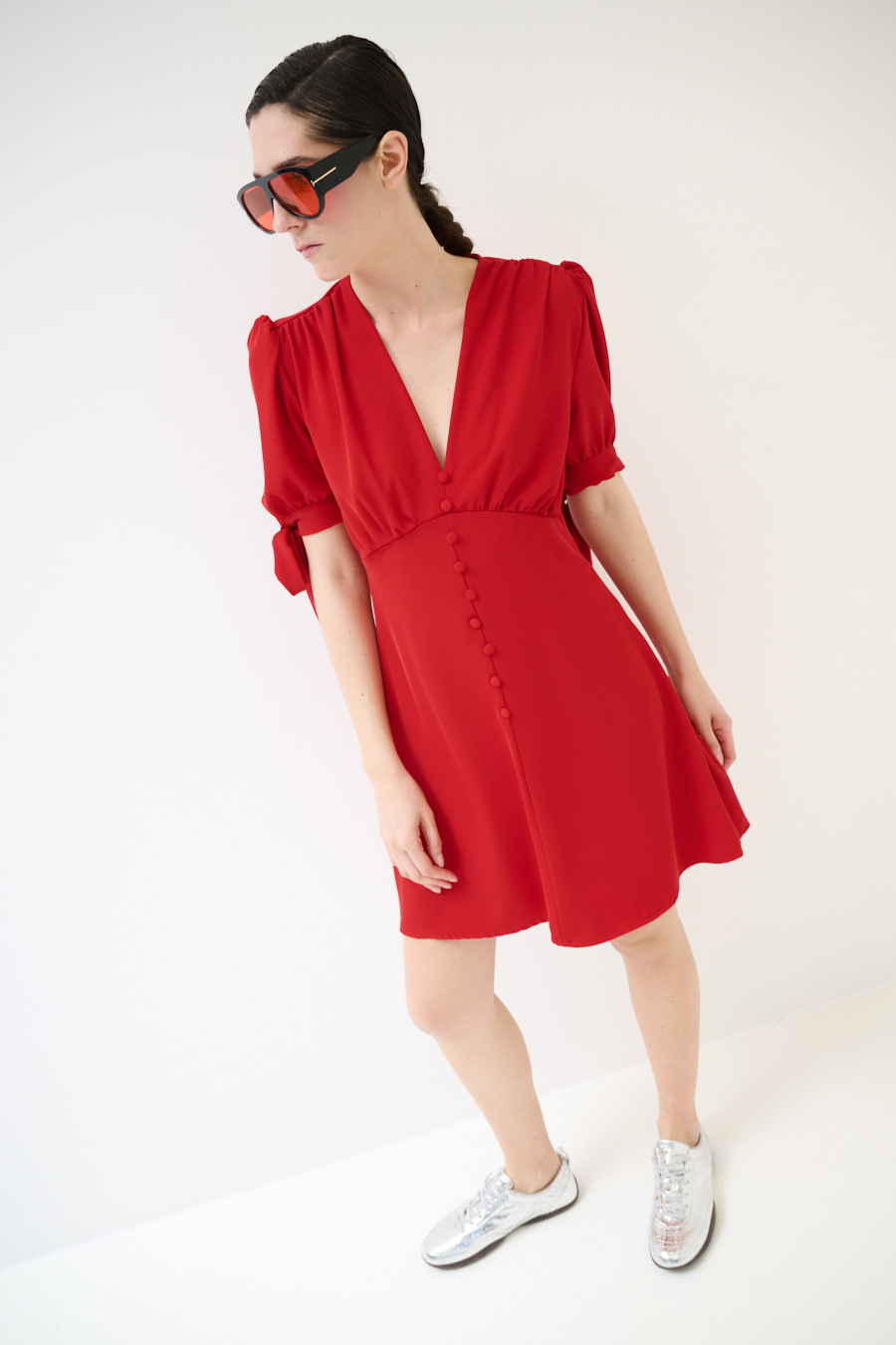 ABITO CORTO CON BOTTONI FODERATI ROSSO