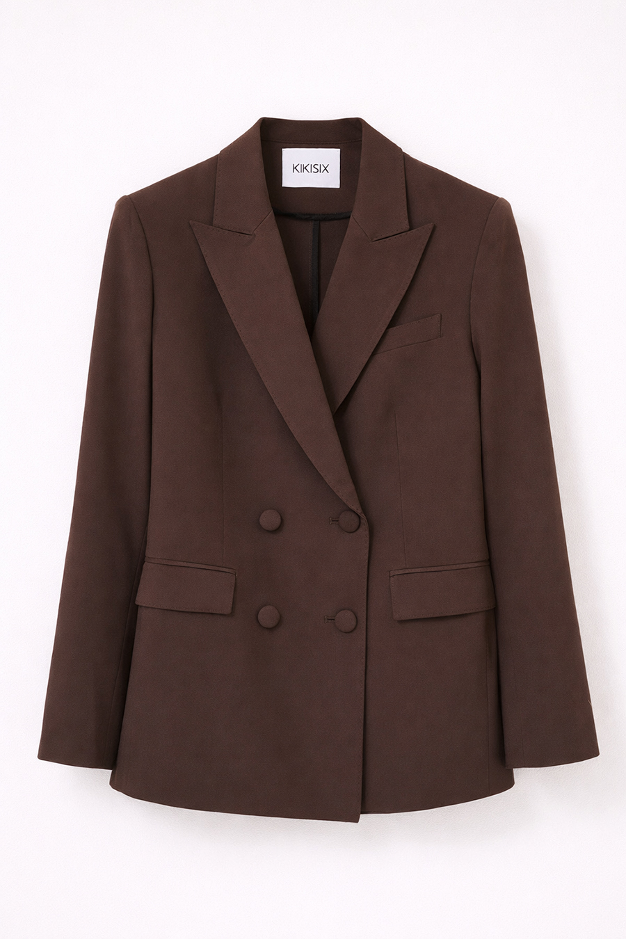 Giacca blazer a doppio petto con finte tasche con pattine e impuntura tono su tono sui profili