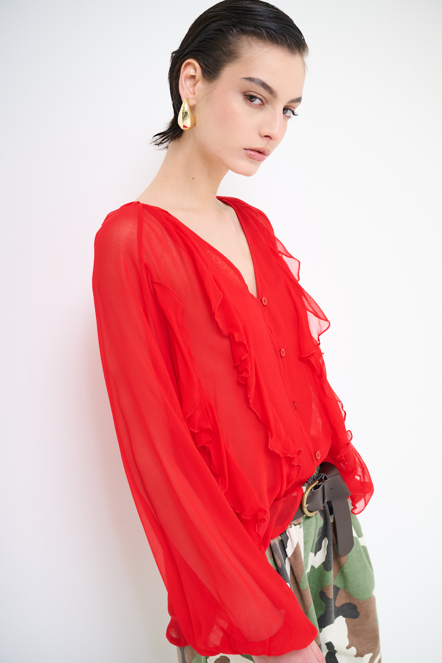 BLUSA CON BOTTONI E VOLANT ROSSO