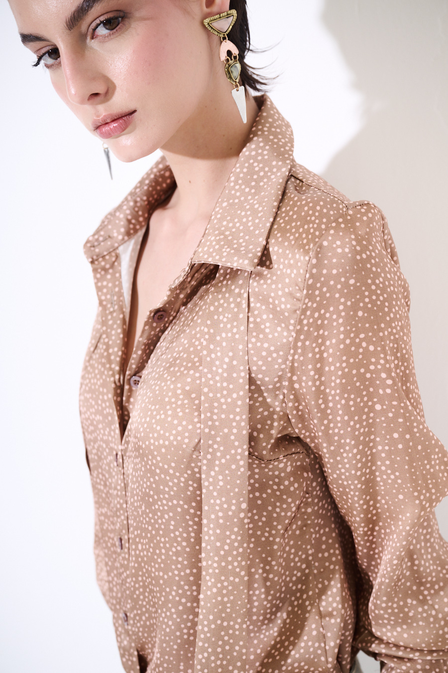 Camicia basic in raso stampato con manica lunga e abbottonatura centrale, con foulard al collo