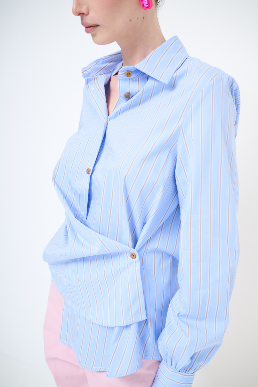 CAMICIA CON RIPRESA LATERALE E BOTTONE RIGATA