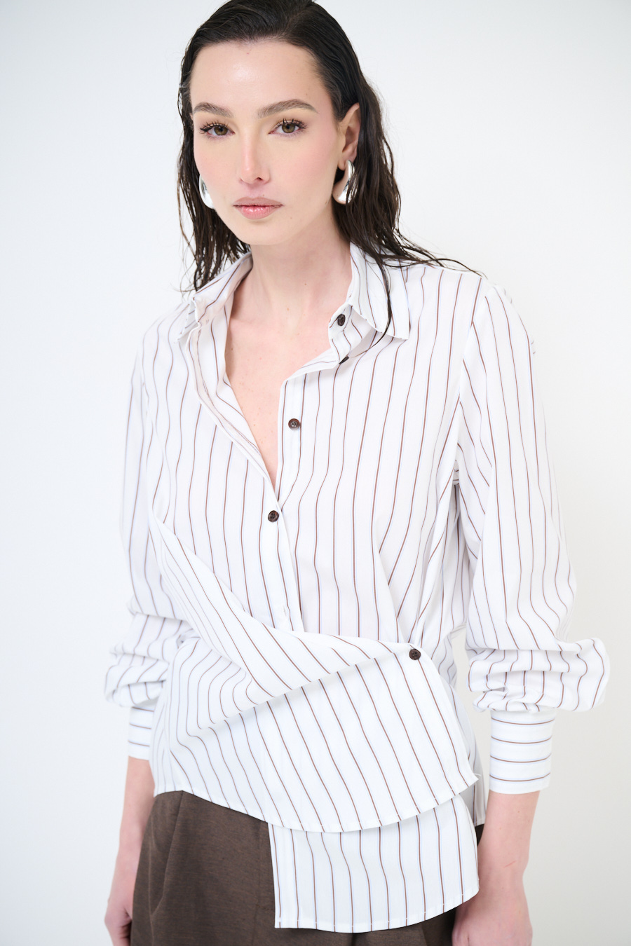 Camicia rigata con ripresa laterale, abbottonatura frontale