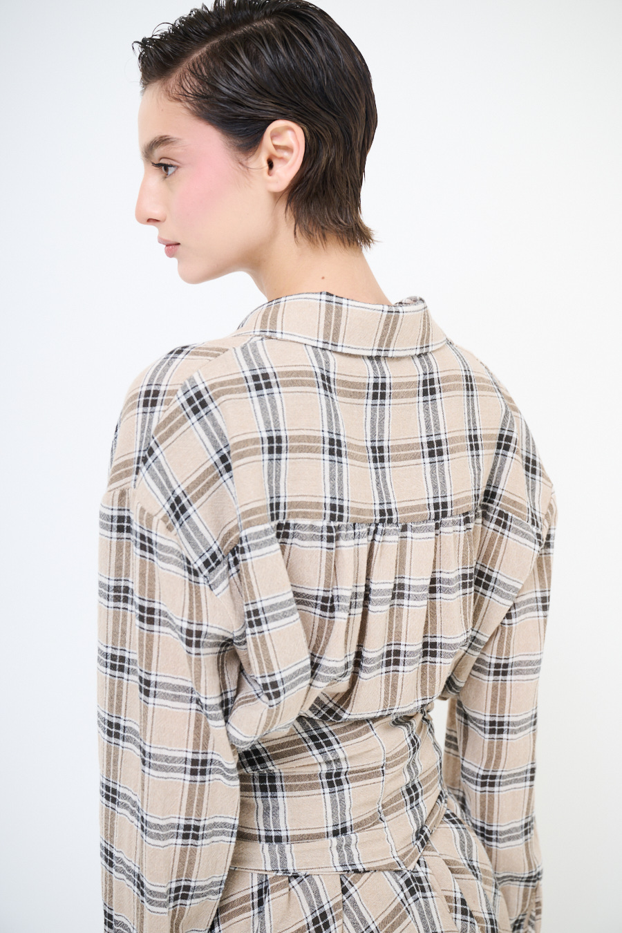 CAMICIA OVER A QUADRI CON PATCH CAMMELLO