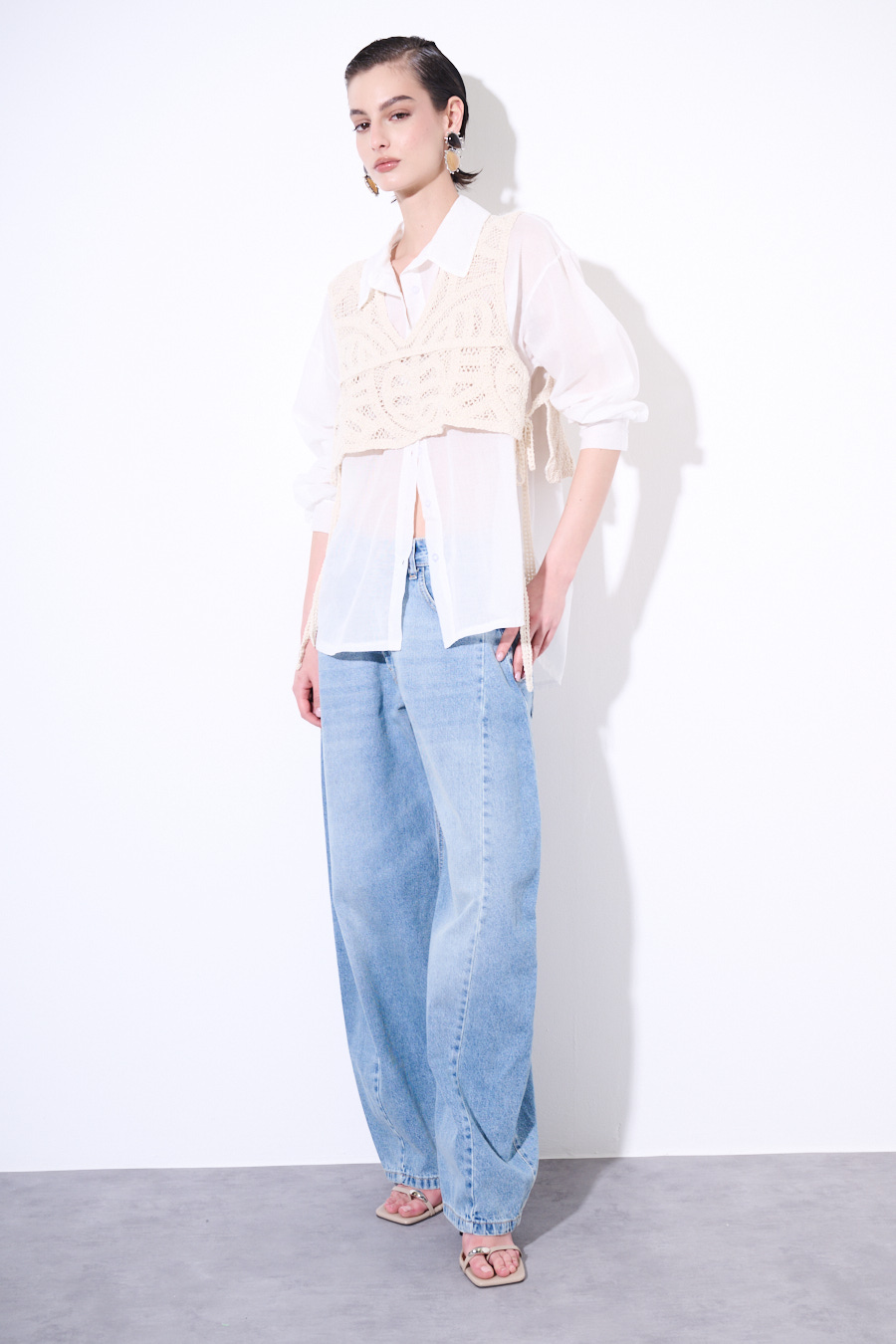 CAMICIA OVER IN MUSSOLA CON TOP MACRAME