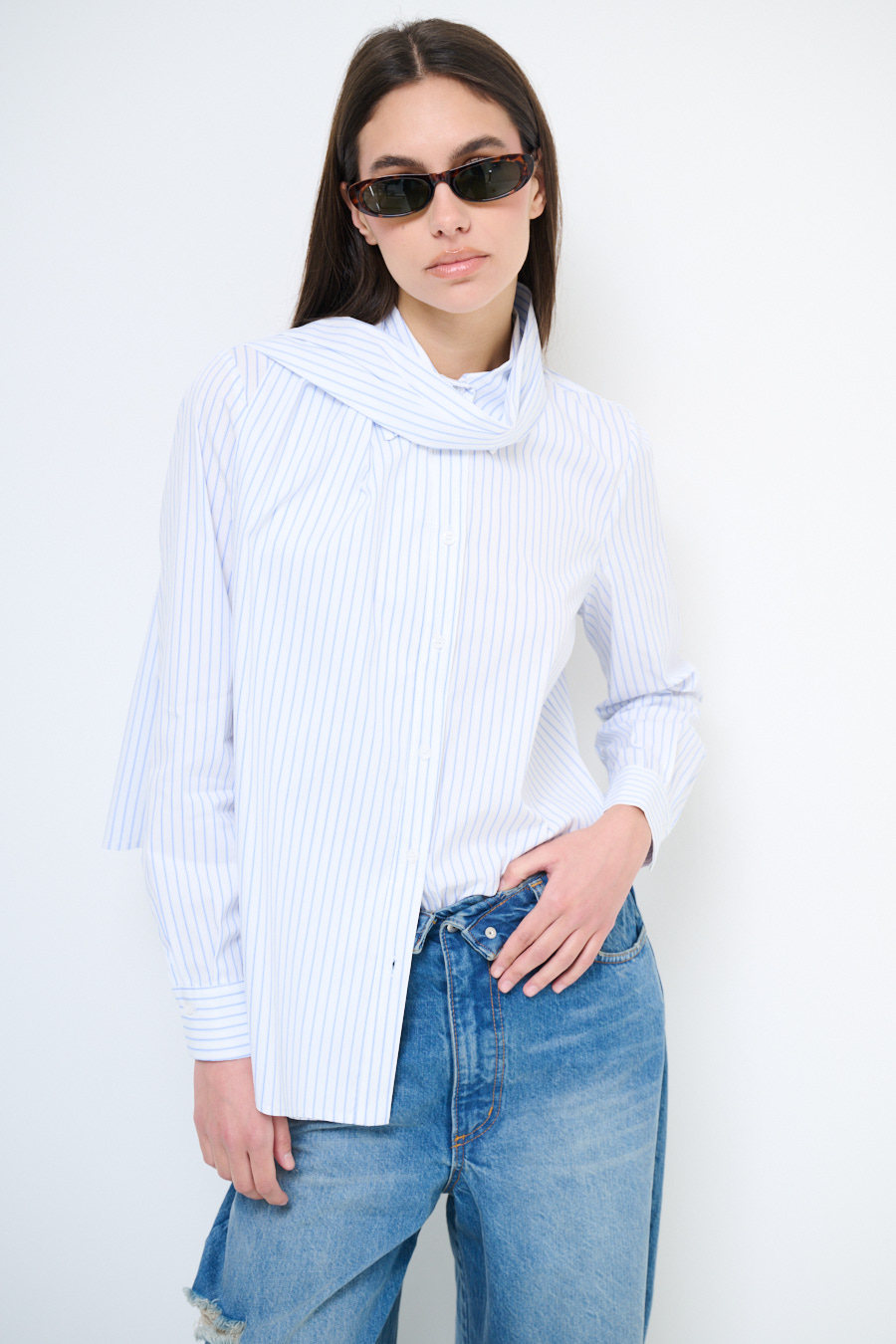 CAMICIA OVER RIGATA CON FOULARD BIANCO