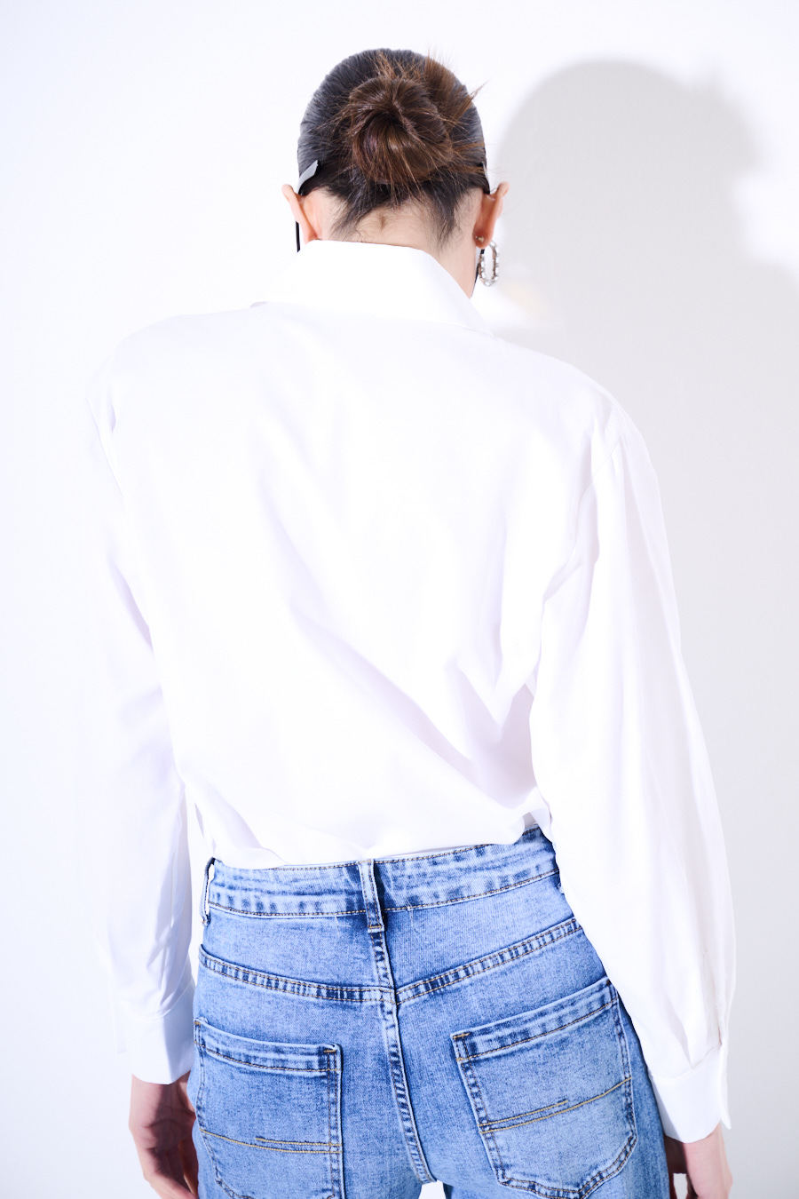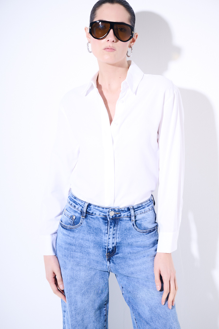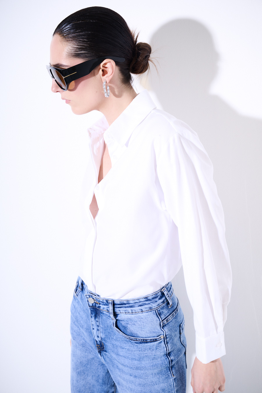 Camicia Oxford oversize a manica lunga con abbottonatura centrale coperta da patta e stondata sul fondo