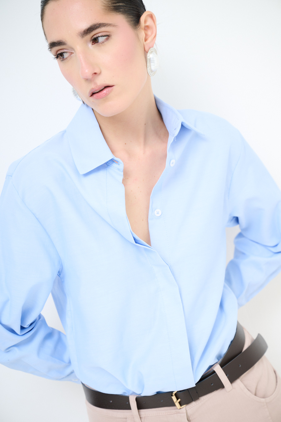Camicia Oxford oversize a manica lunga con abbottonatura centrale coperta da patta e stondata sul fondo