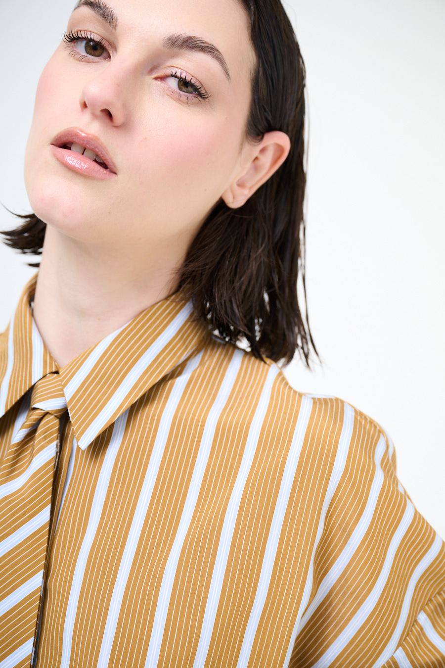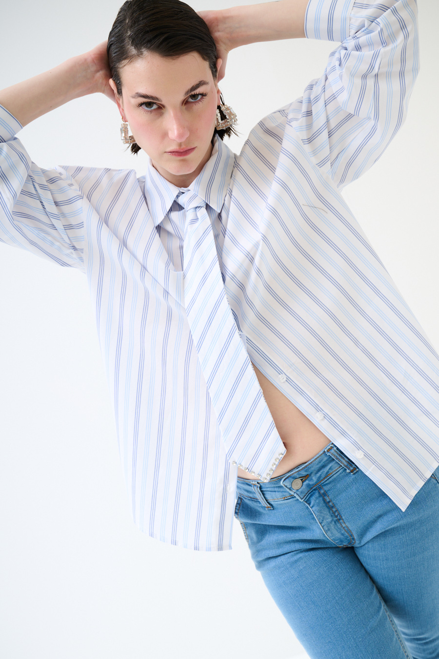 Camicia a righe in viscosa oversize con cravatta con castoni sul fondo