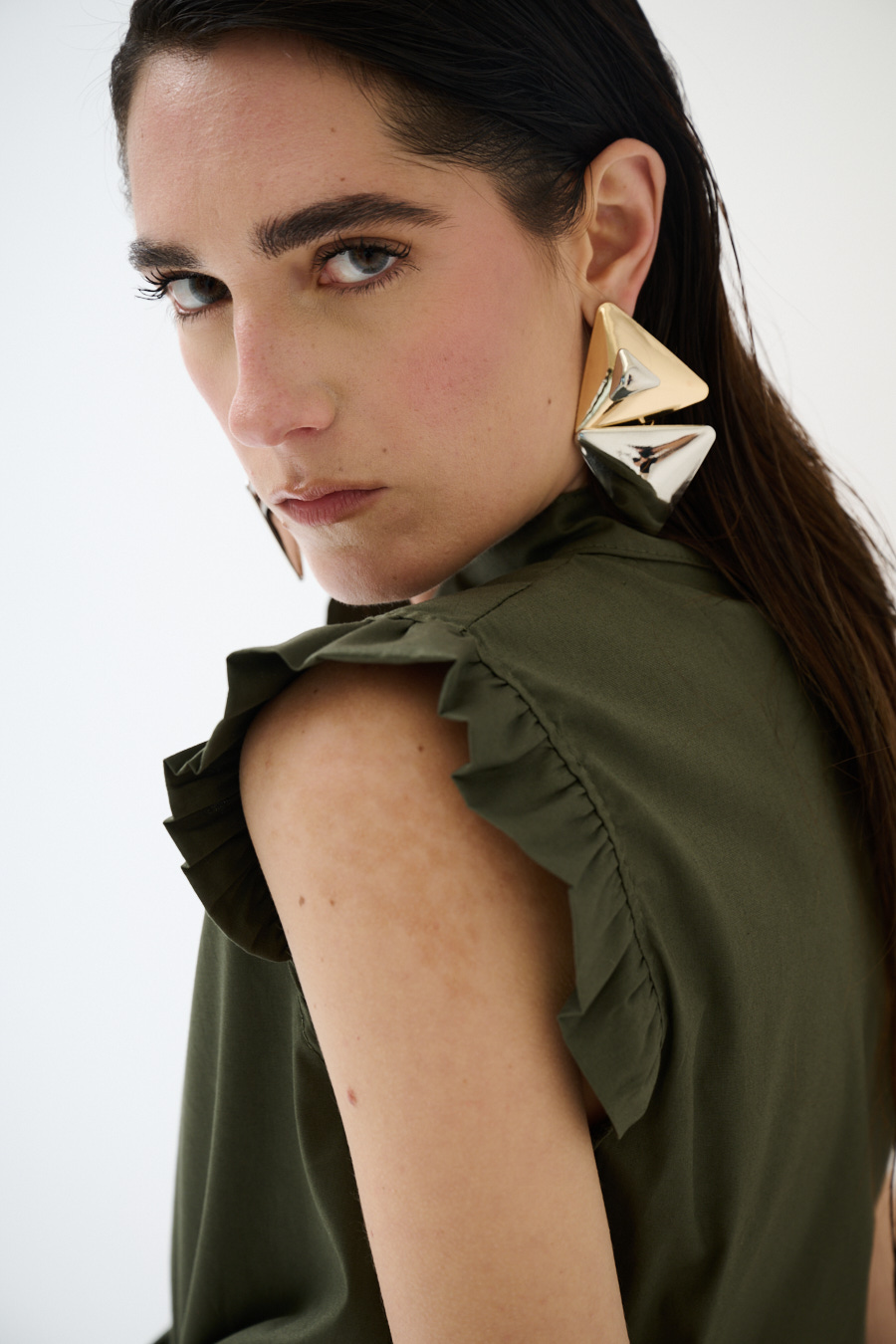 CAMICIA SMANICATA CON NODO IN POPELINE VERDE MILITARE