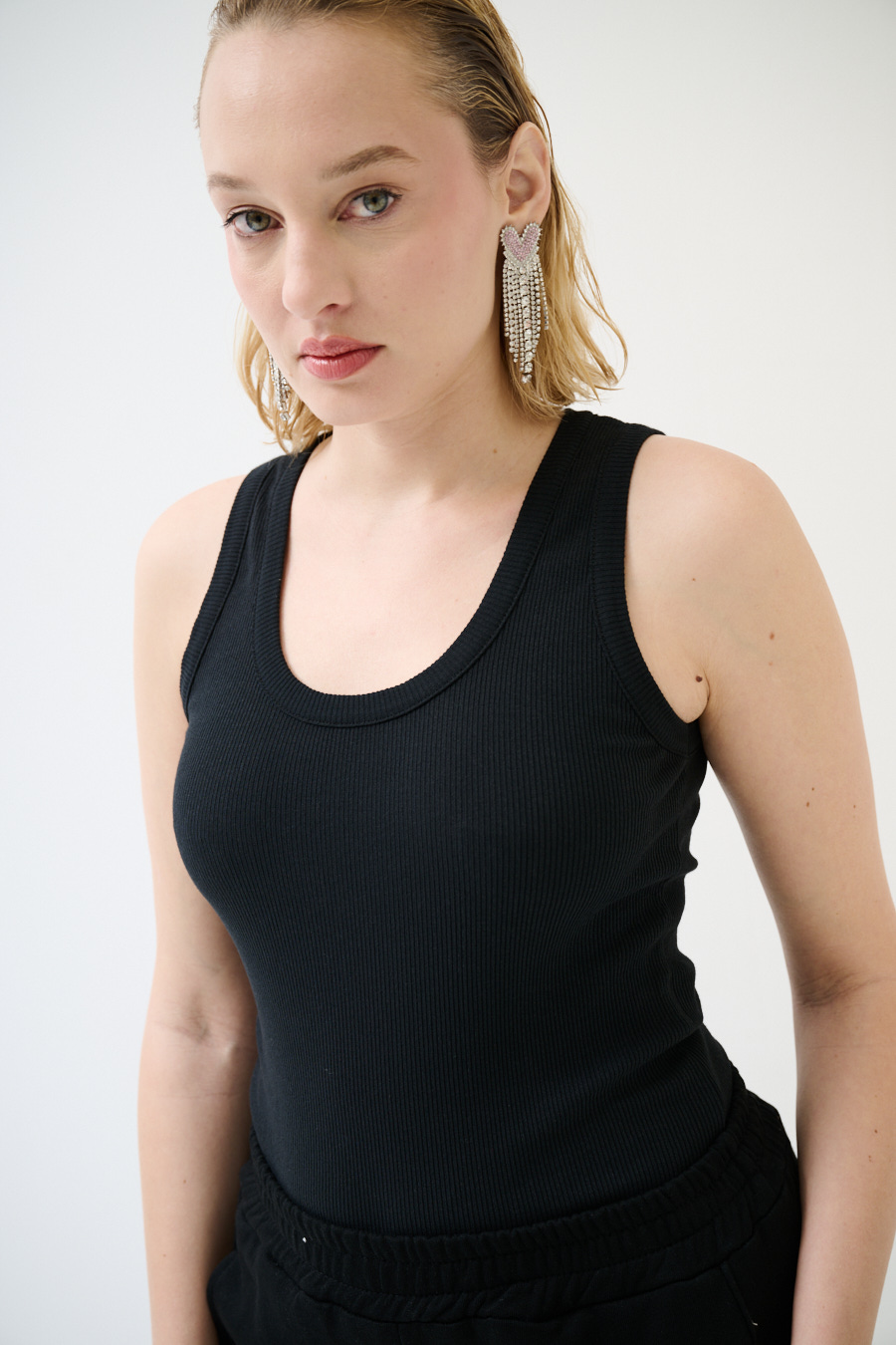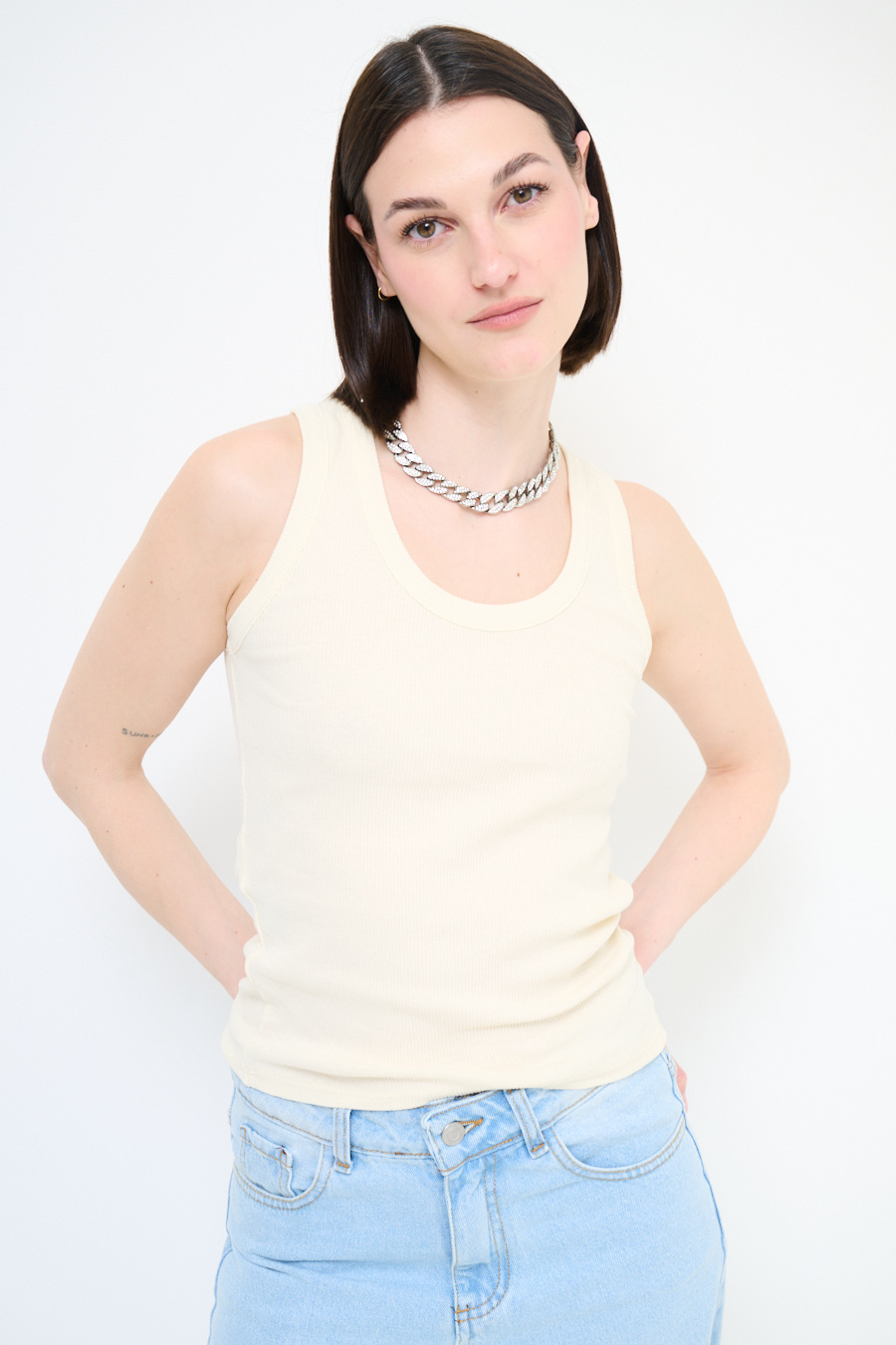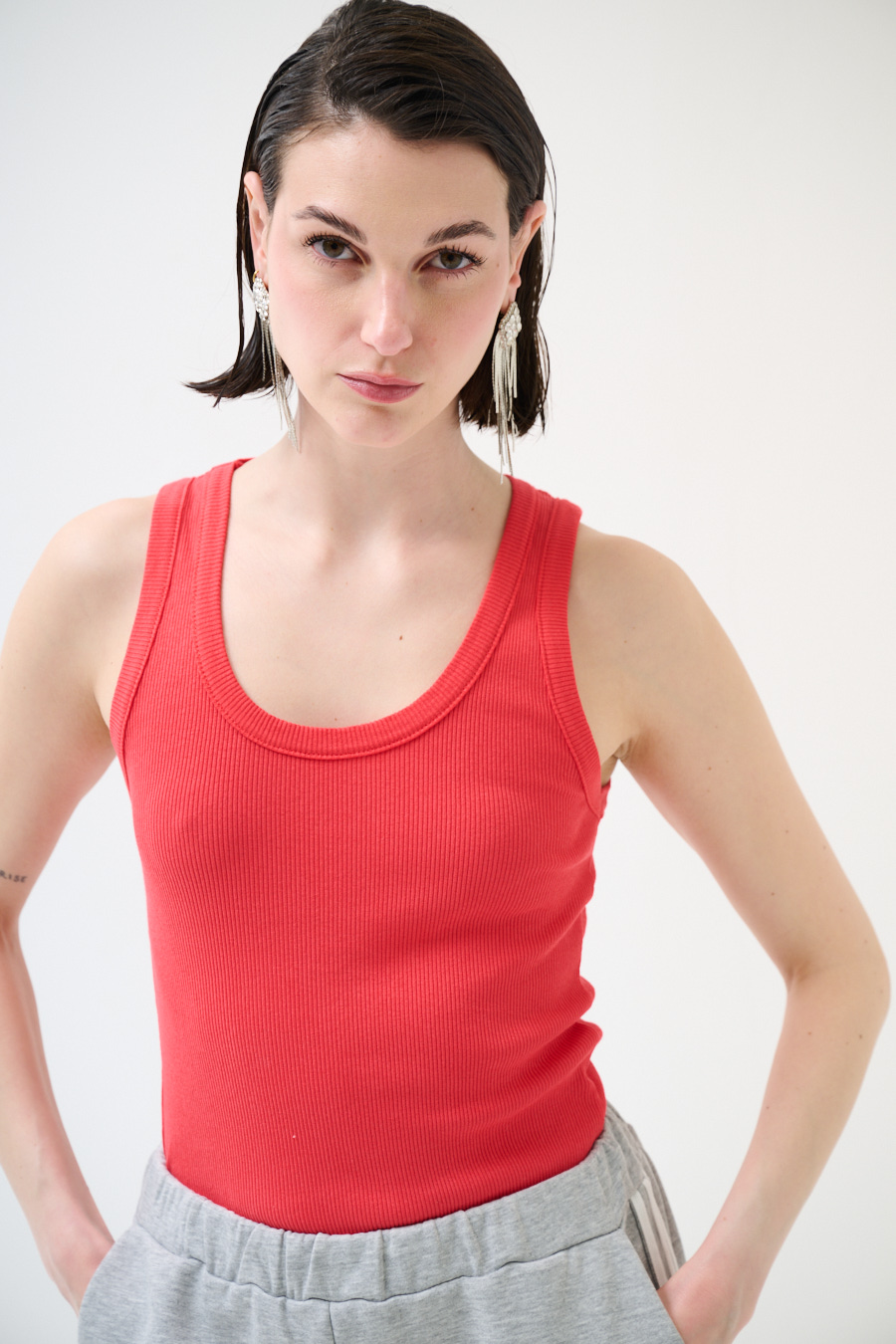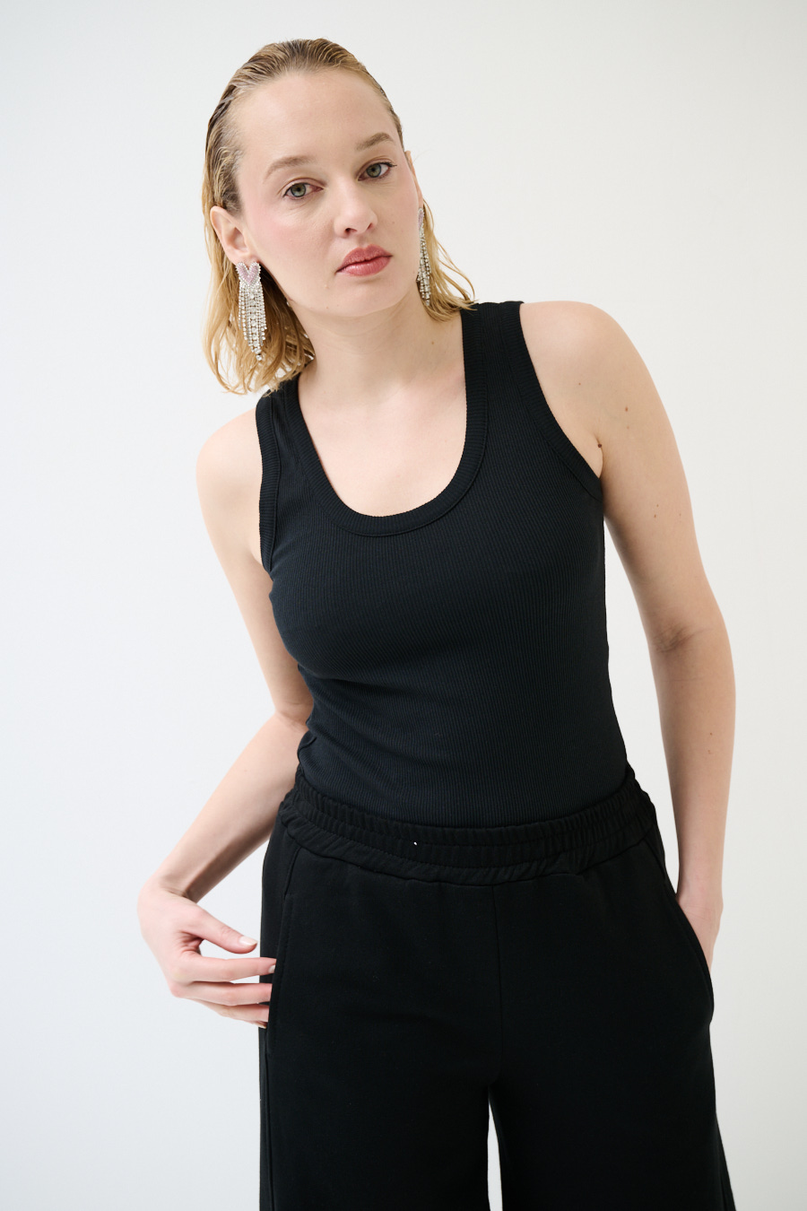 Canotta vogatore a costine basic con scollo ampio