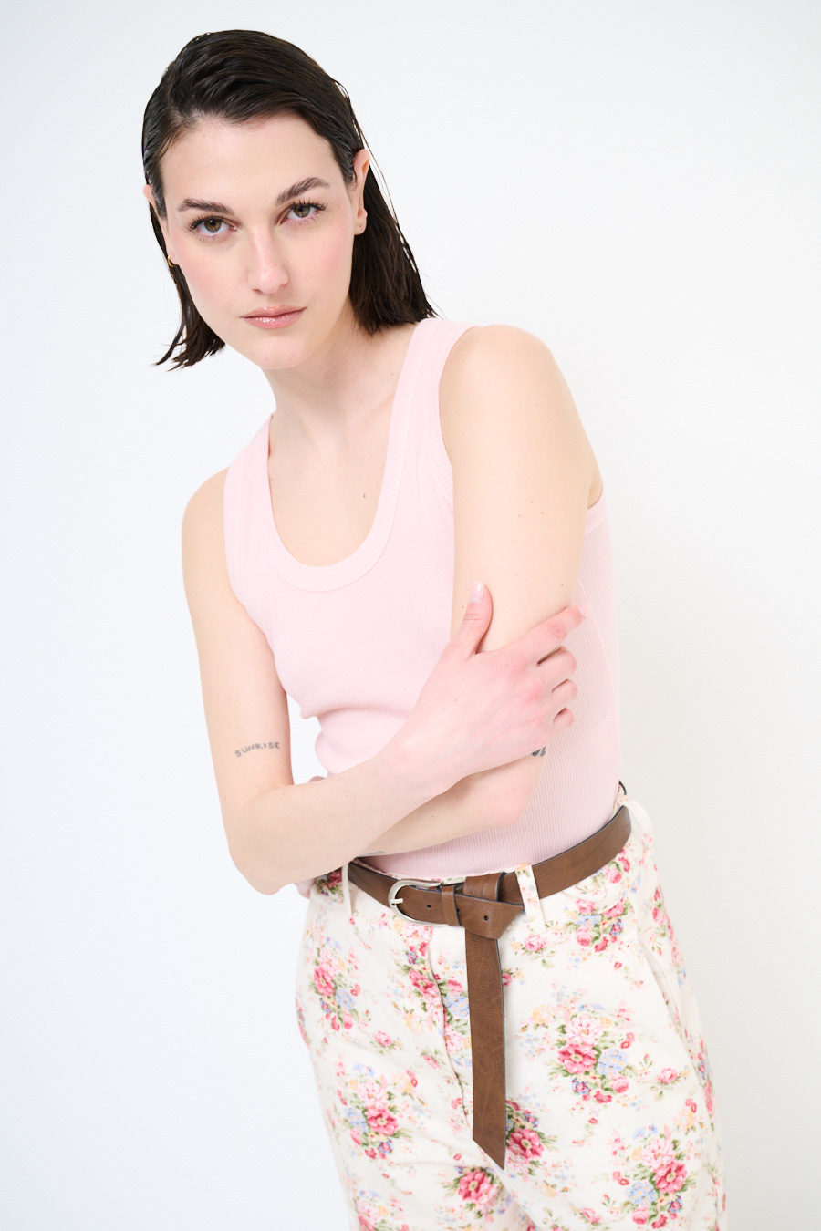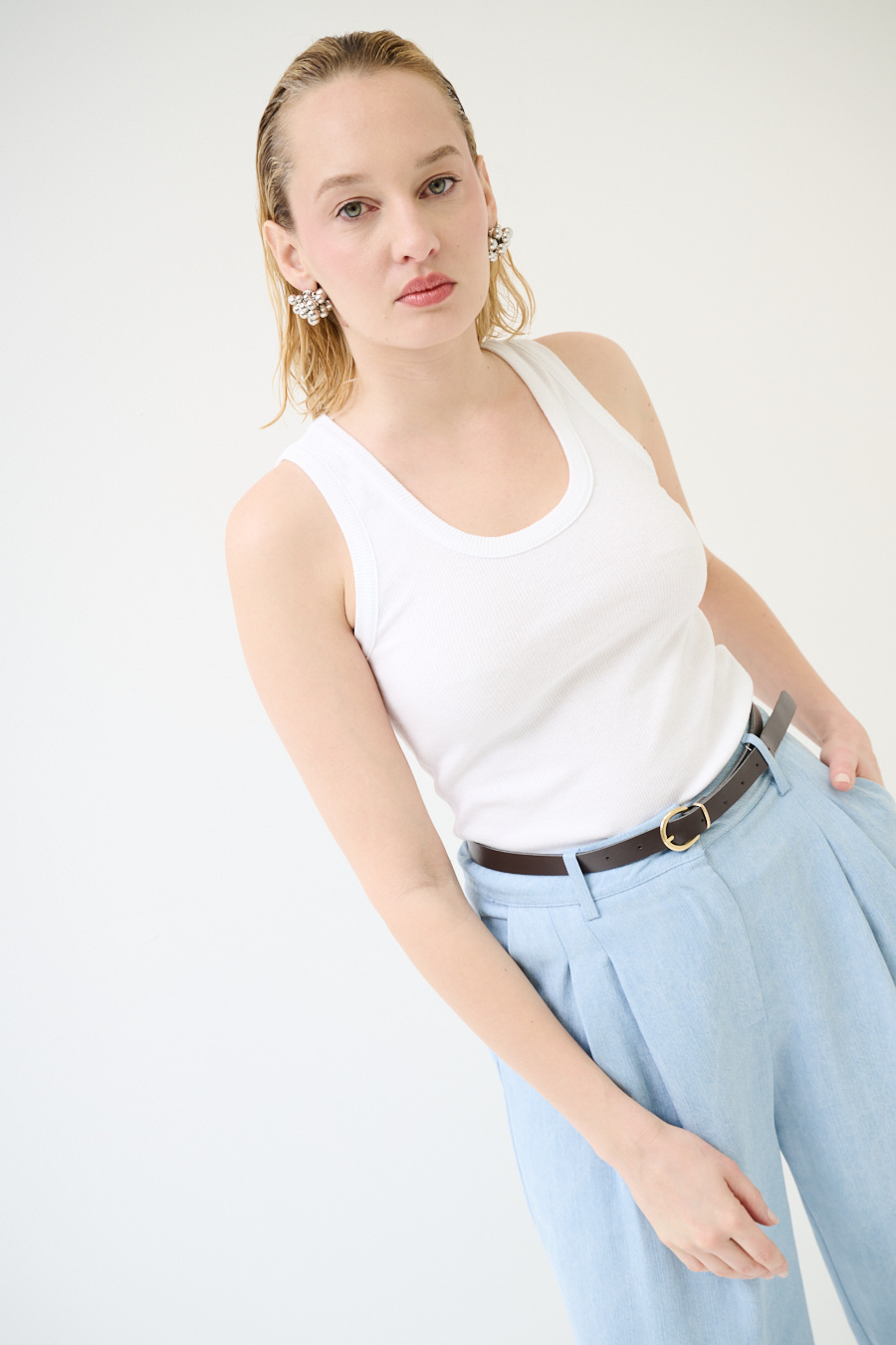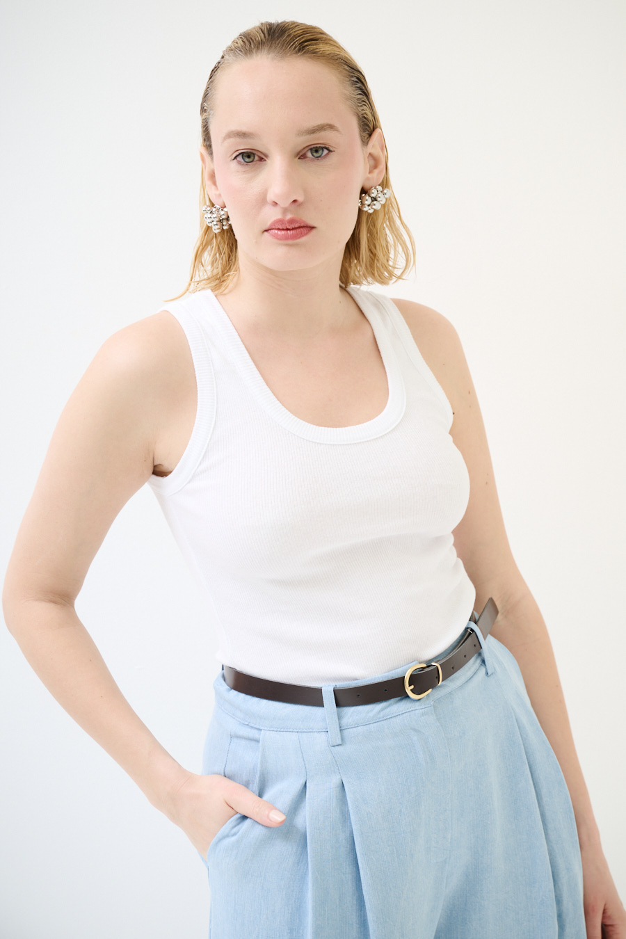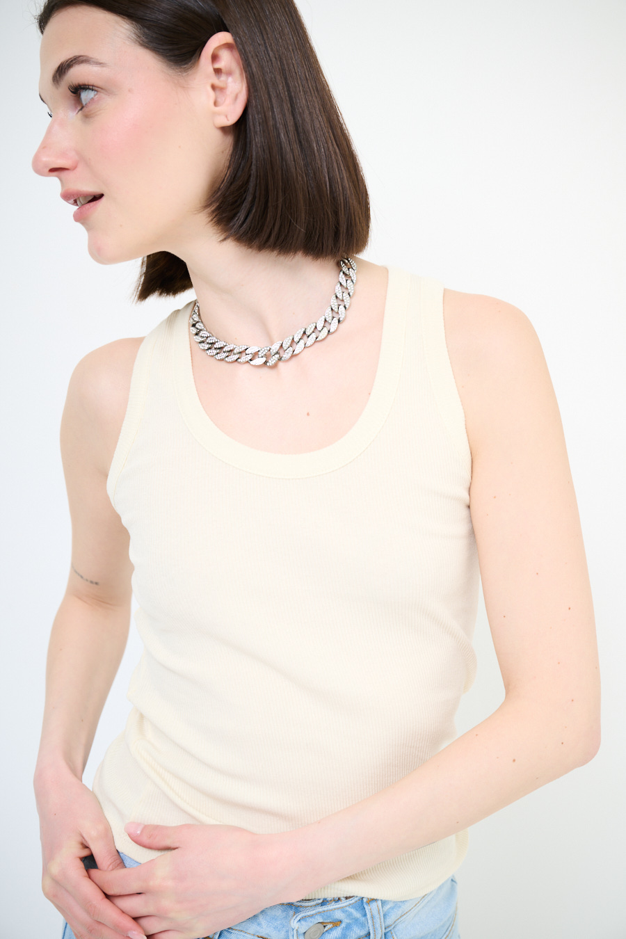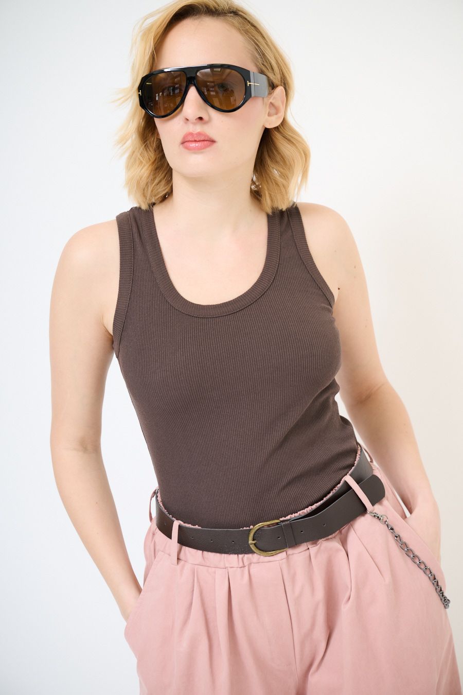 Canotta vogatore a costine basic con scollo ampio