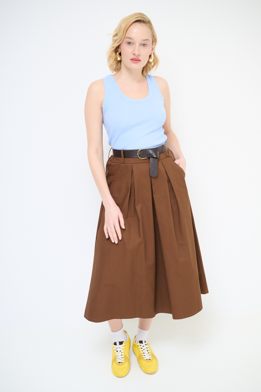 ABITO CHEMISIER MIDI A QUADRI CON CINTURA