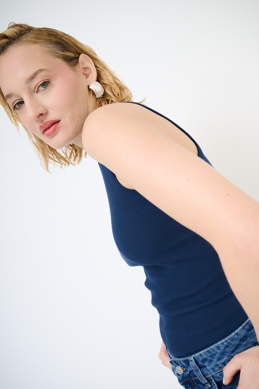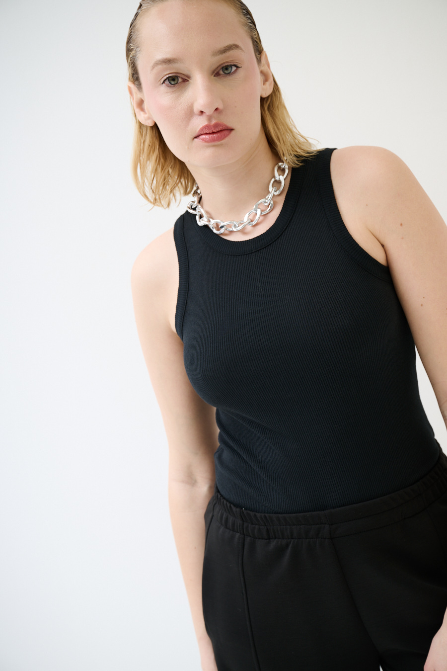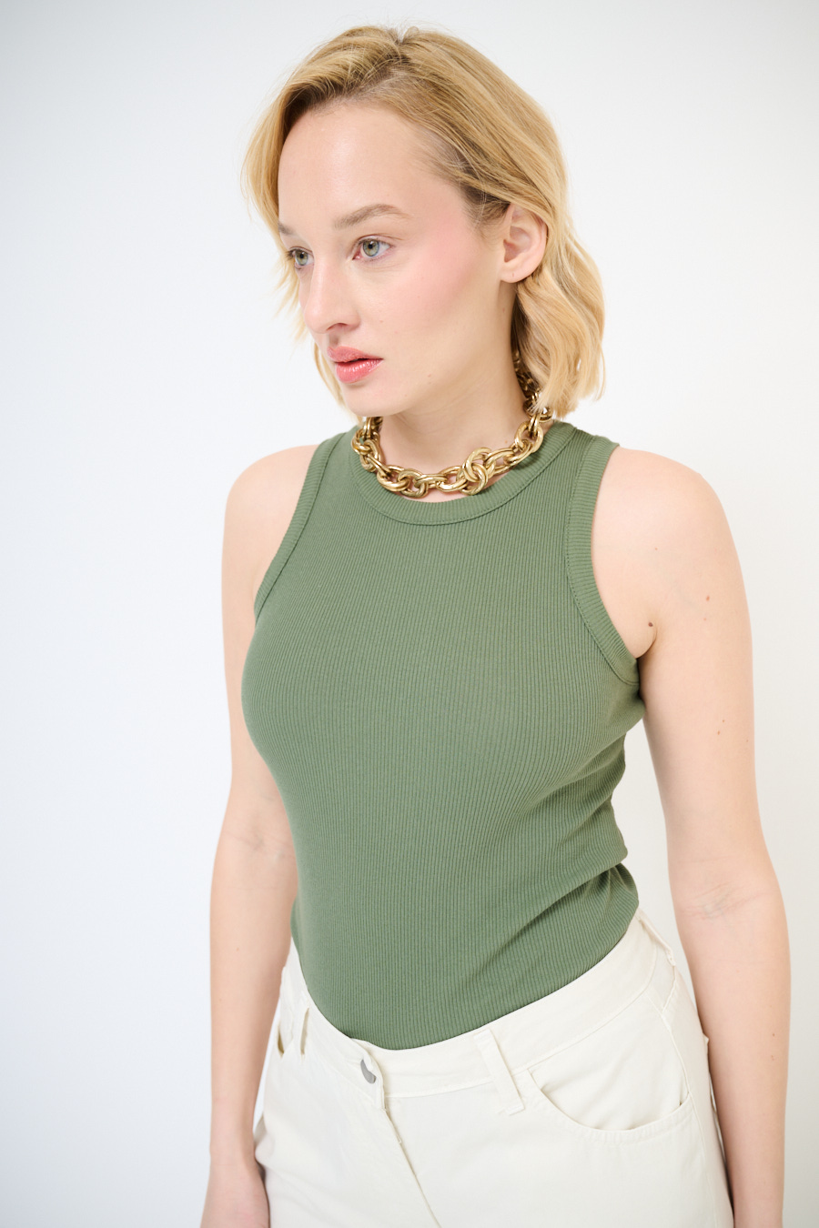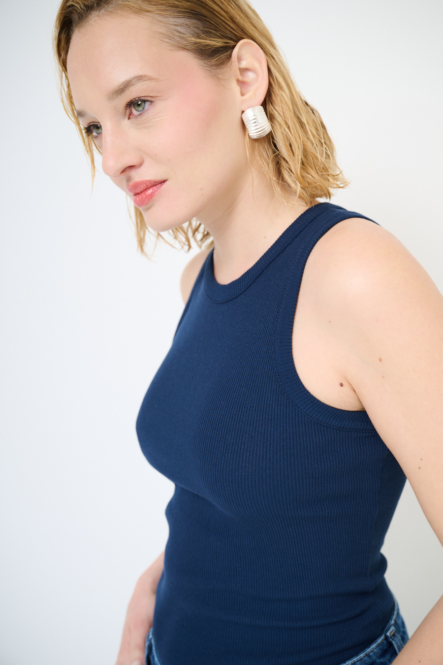 Canotta vogatore a costine basic con girocollo