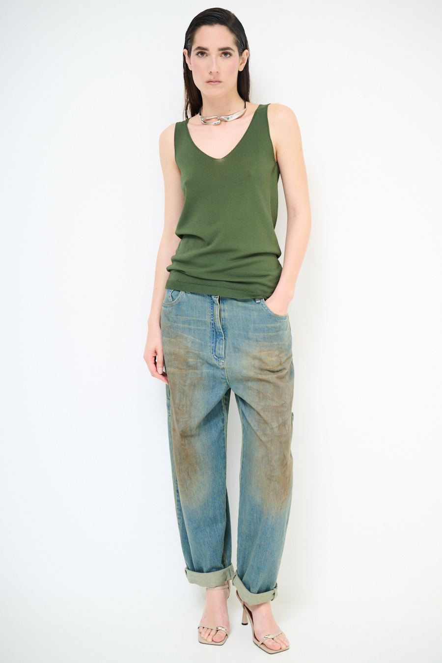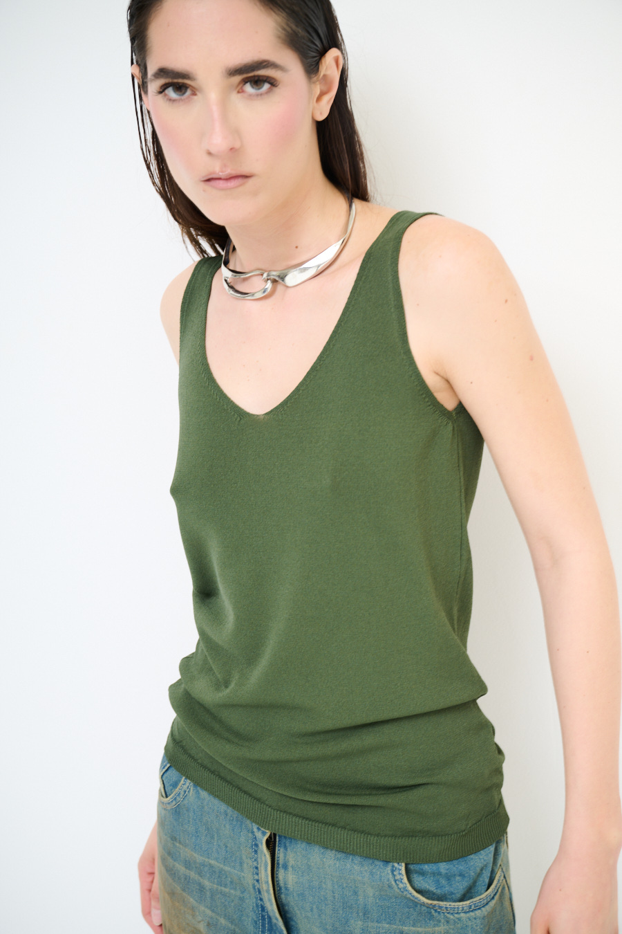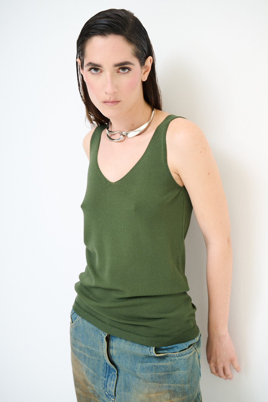CANOTTA DOPPIO V IN VISCOSA VERDE MILITARE