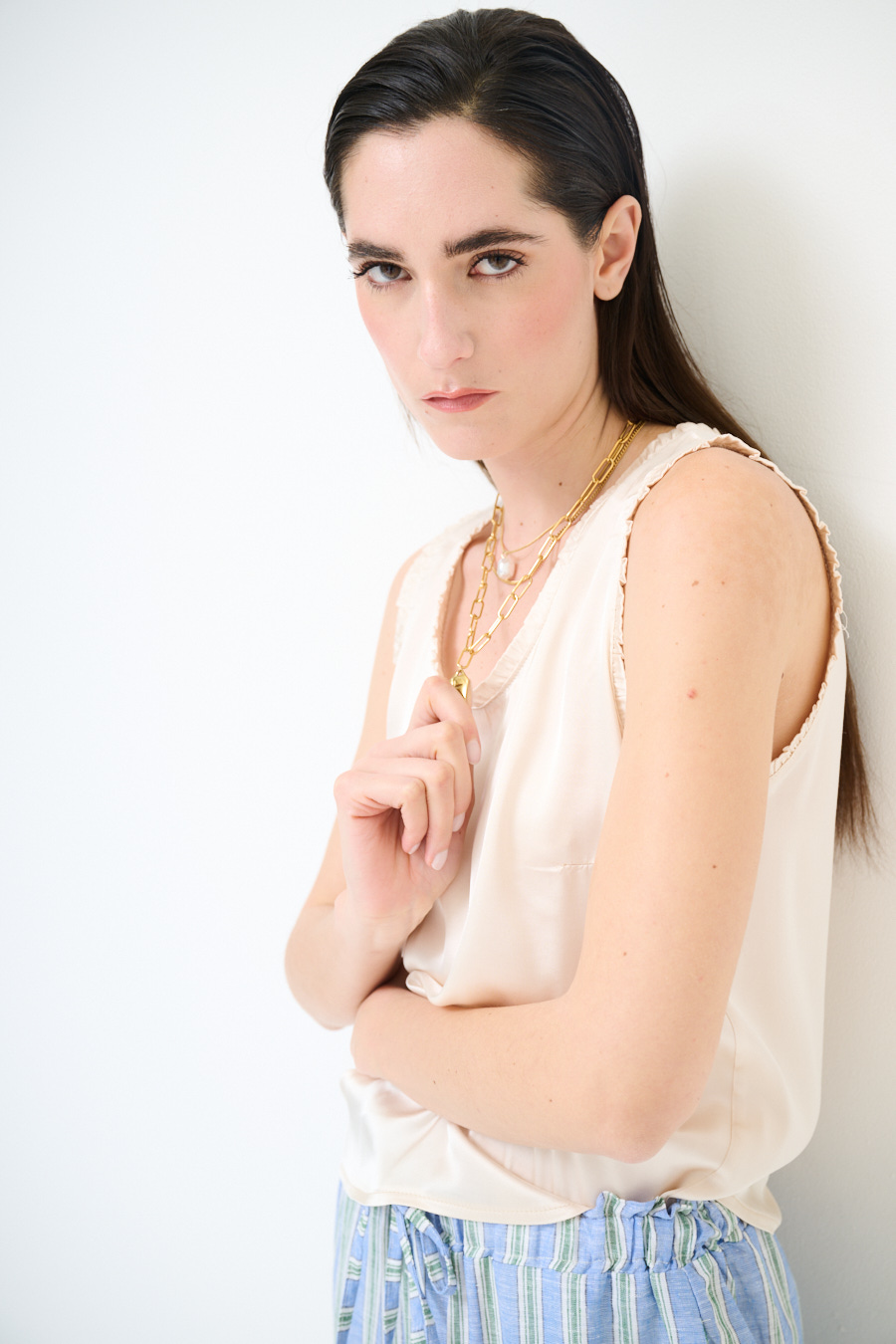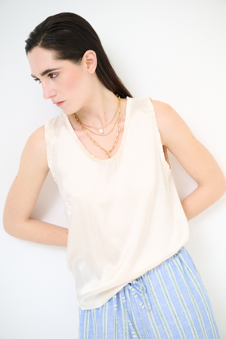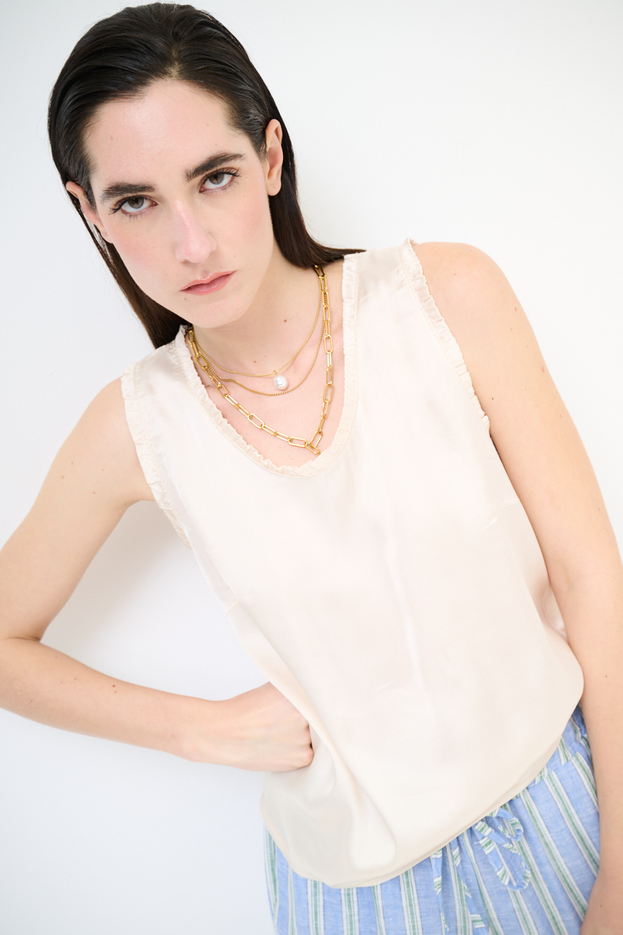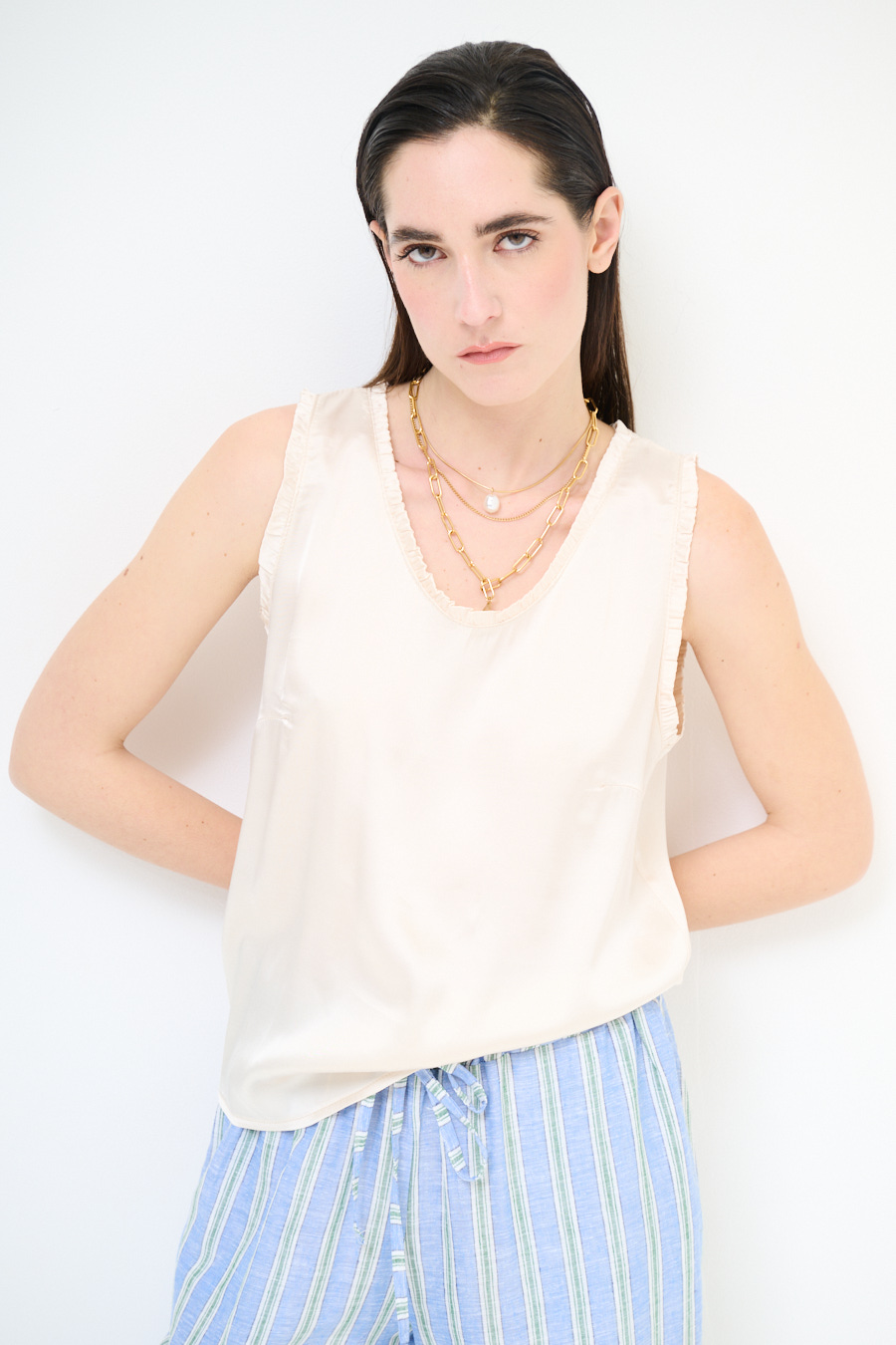 CANOTTA IN RASO VISCOSA CON ROUCHES BURRO