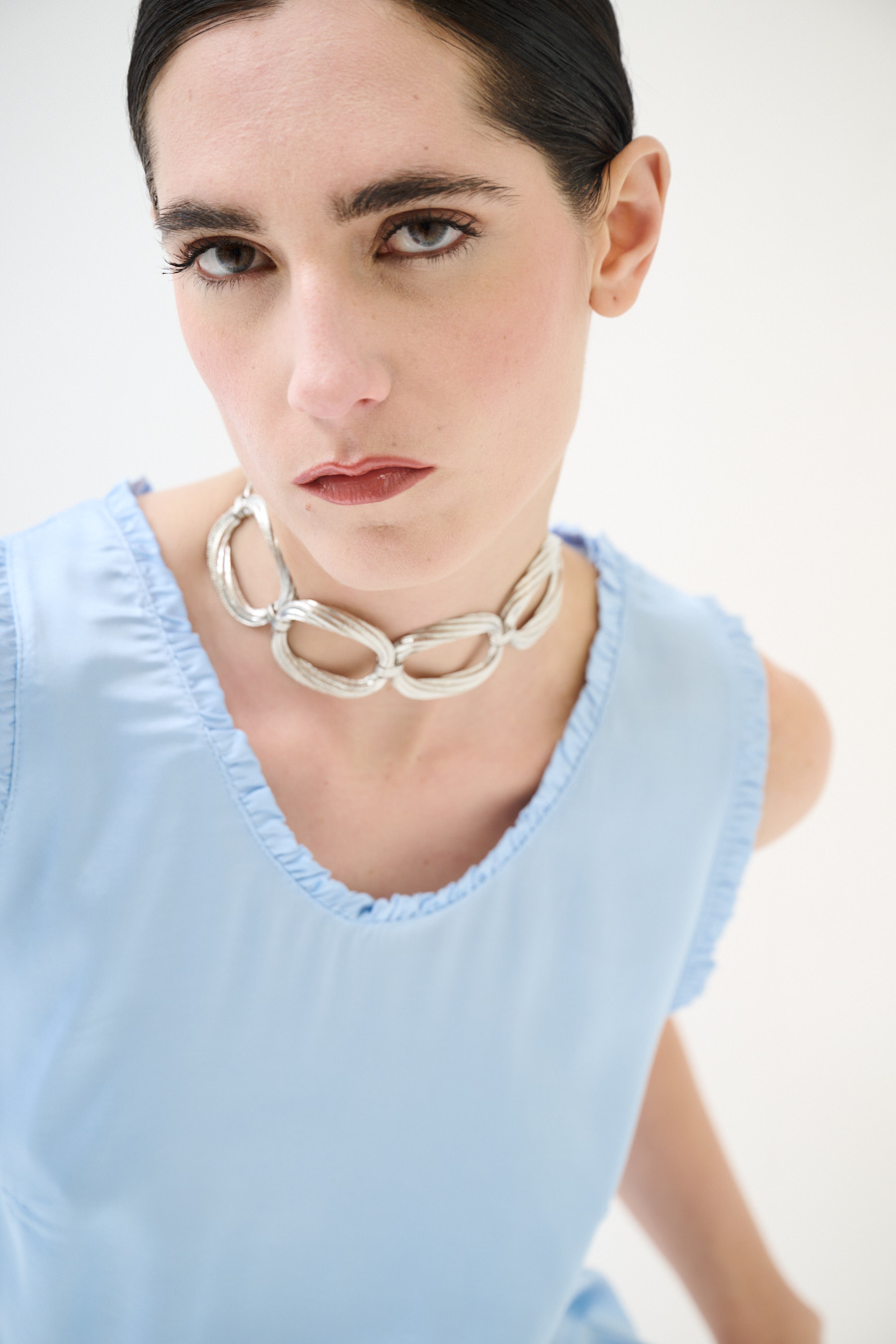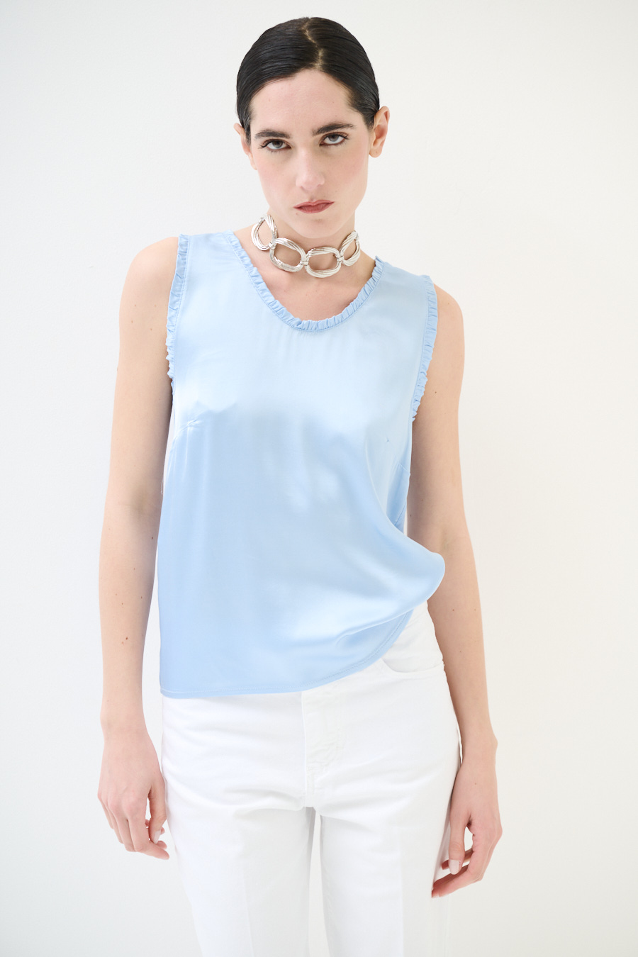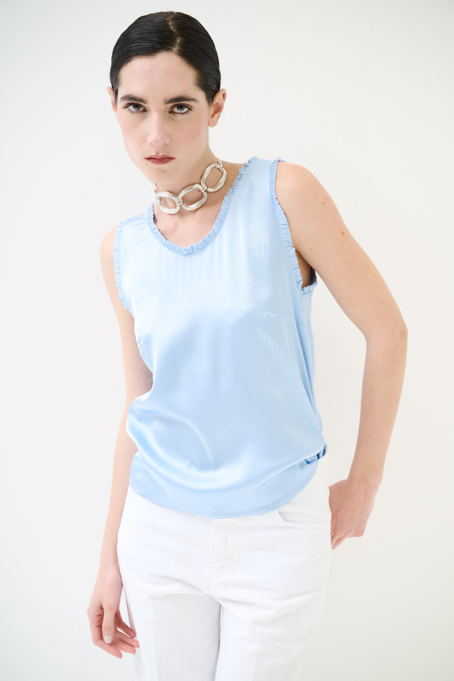 CANOTTA IN RASO VISCOSA CON ROUCHES CELESTE
