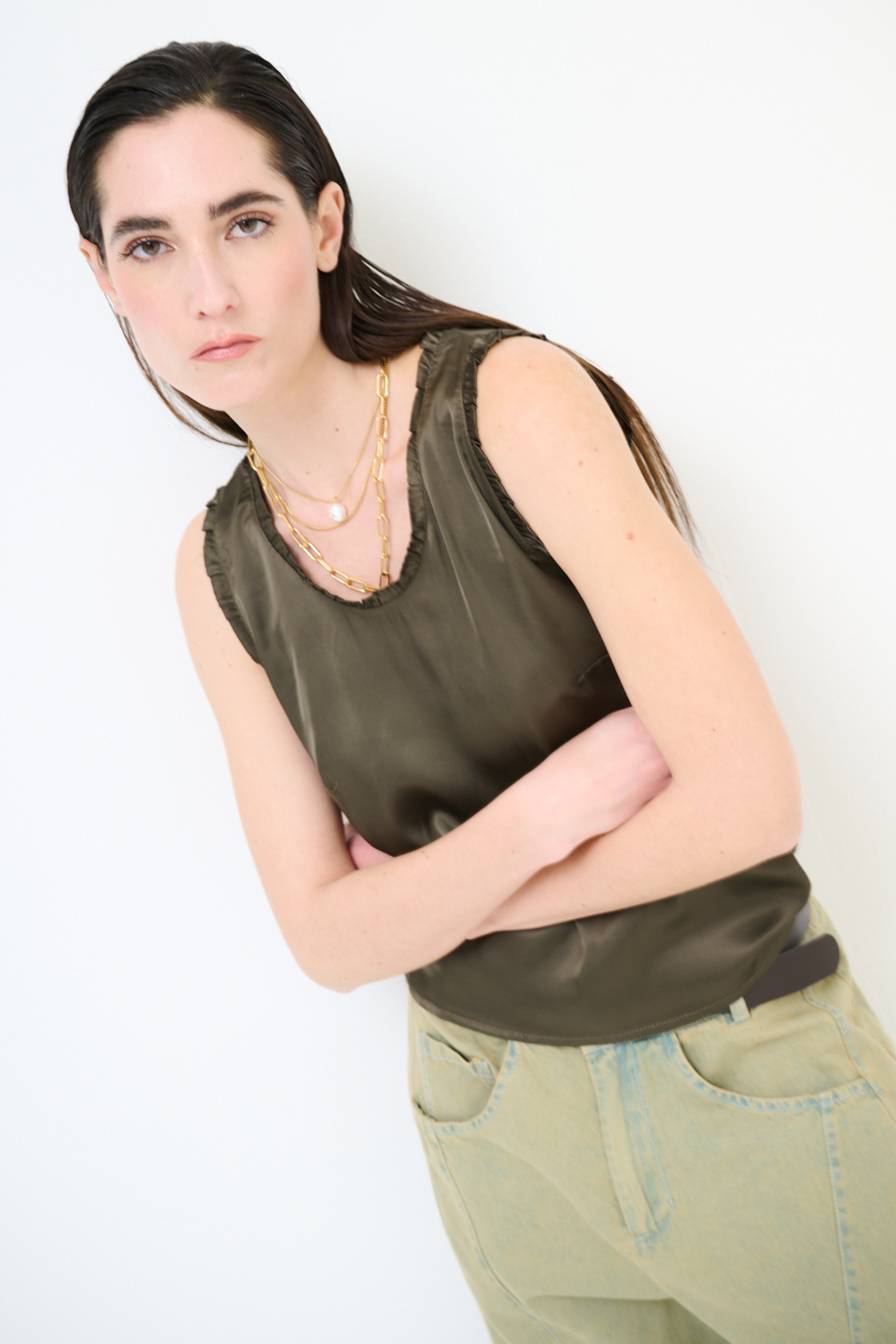 CANOTTA IN RASO VISCOSA CON ROUCHES MORO