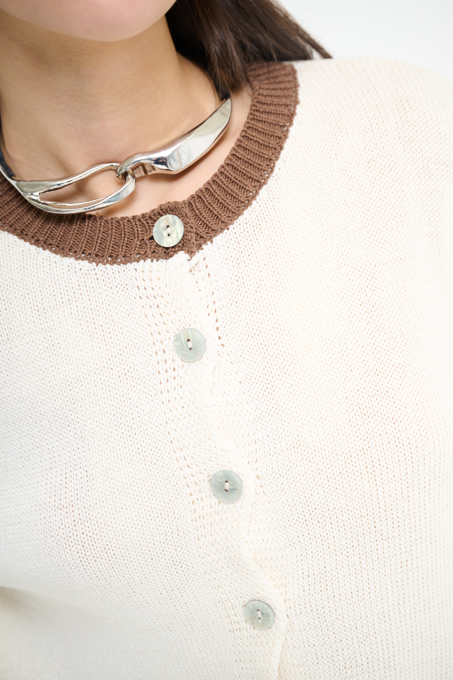CARDIGAN PARICOLLO CON INSERTI A CONTRASTO MOKA