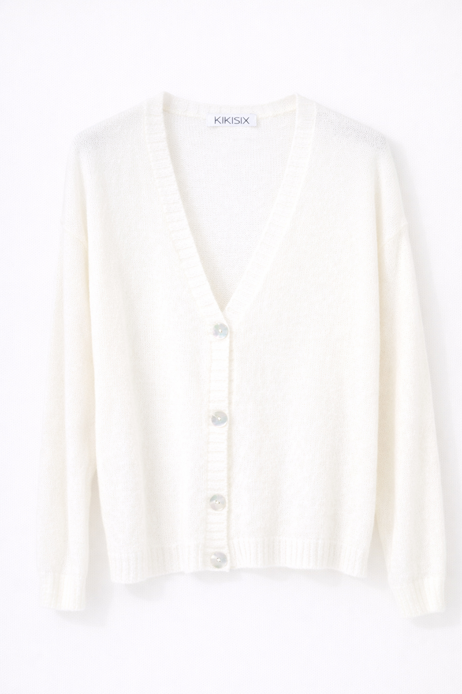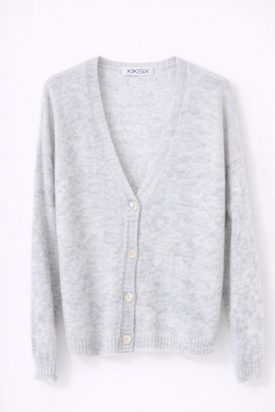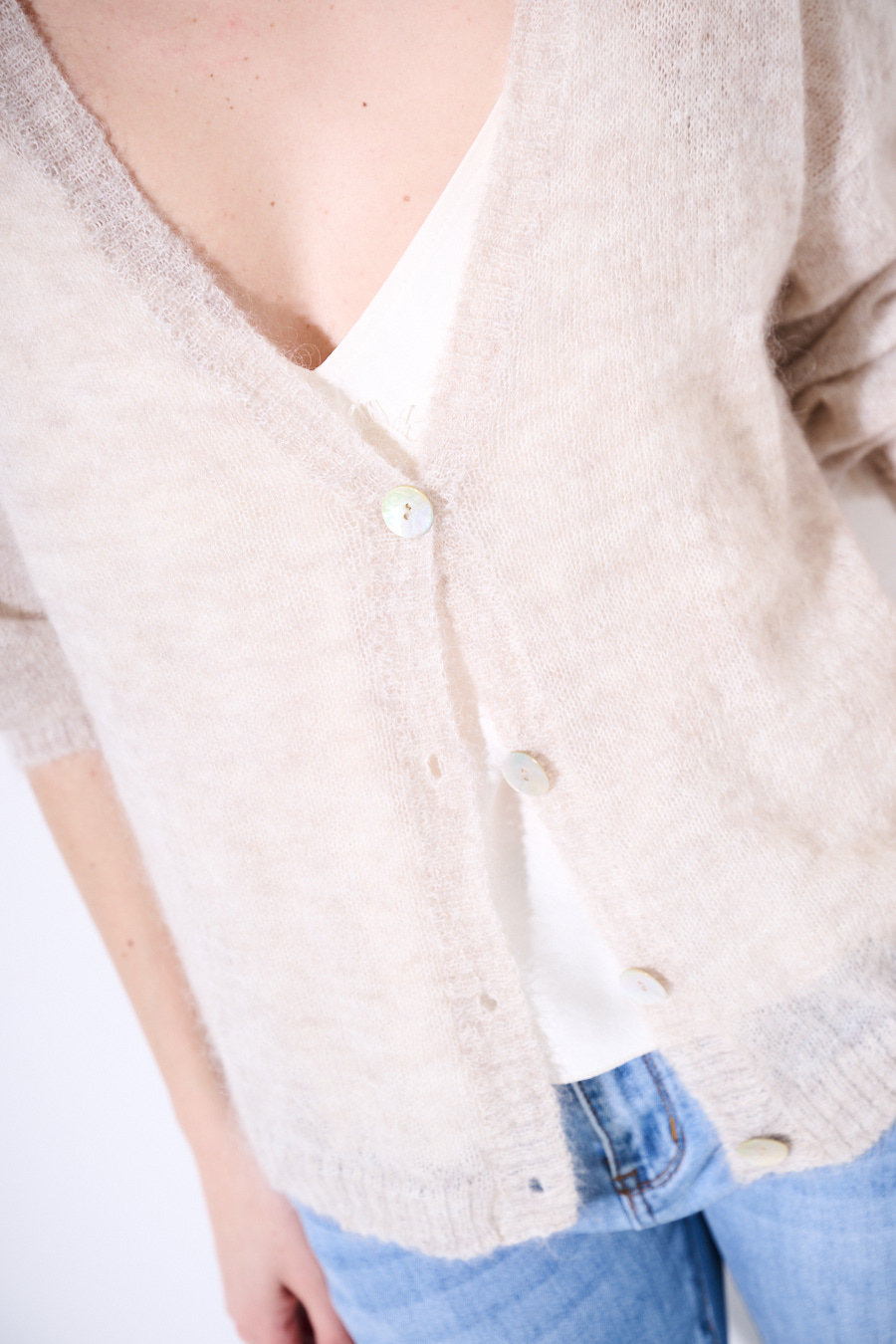 Cardigan con scollo a v in misto mohair con 4 bottoni in madreperla