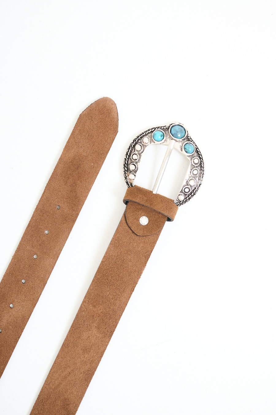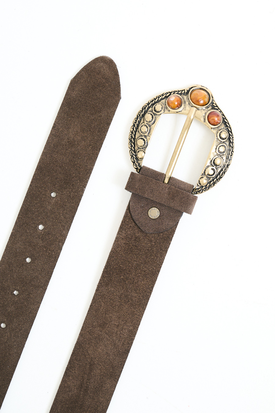 Cintura in suede scamosciata con fibbia con inserti di castoni