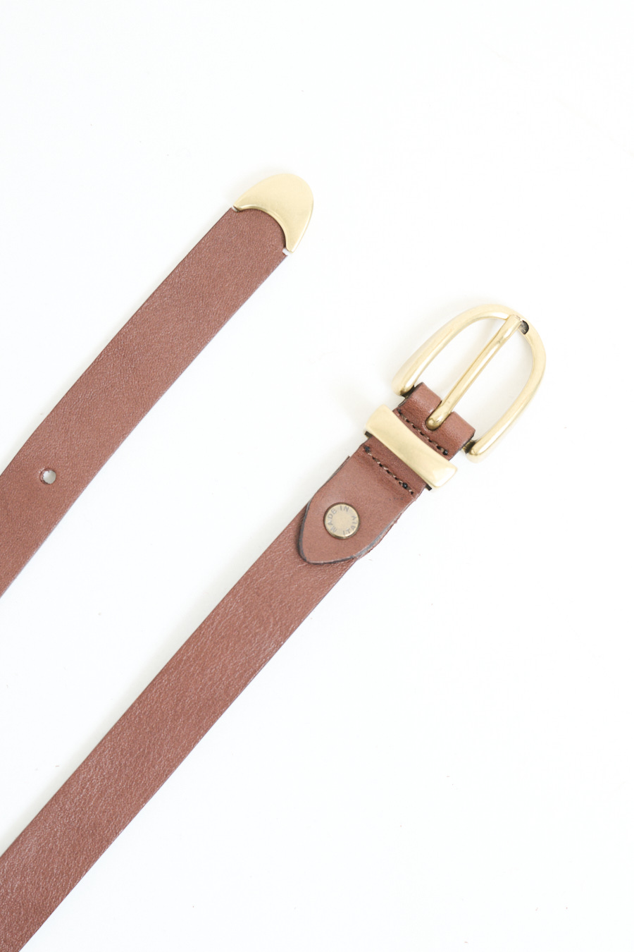 Cintura in cuoio con fibbia e finalino dorati