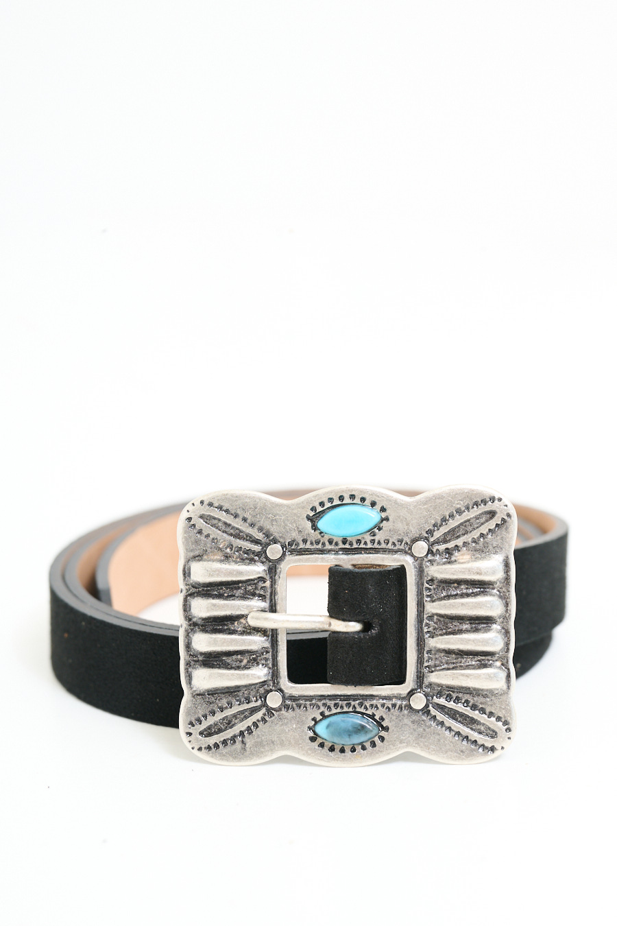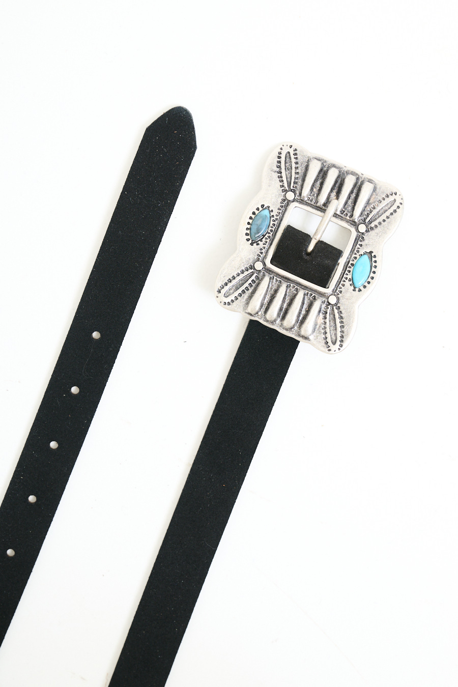 CINTURA SUEDE CON FIBBIA QUADRATA E SMERALDI NERO