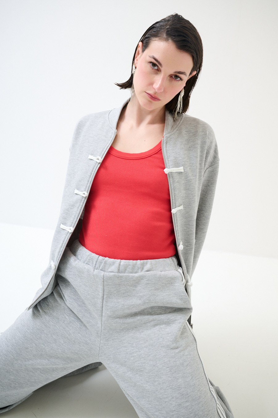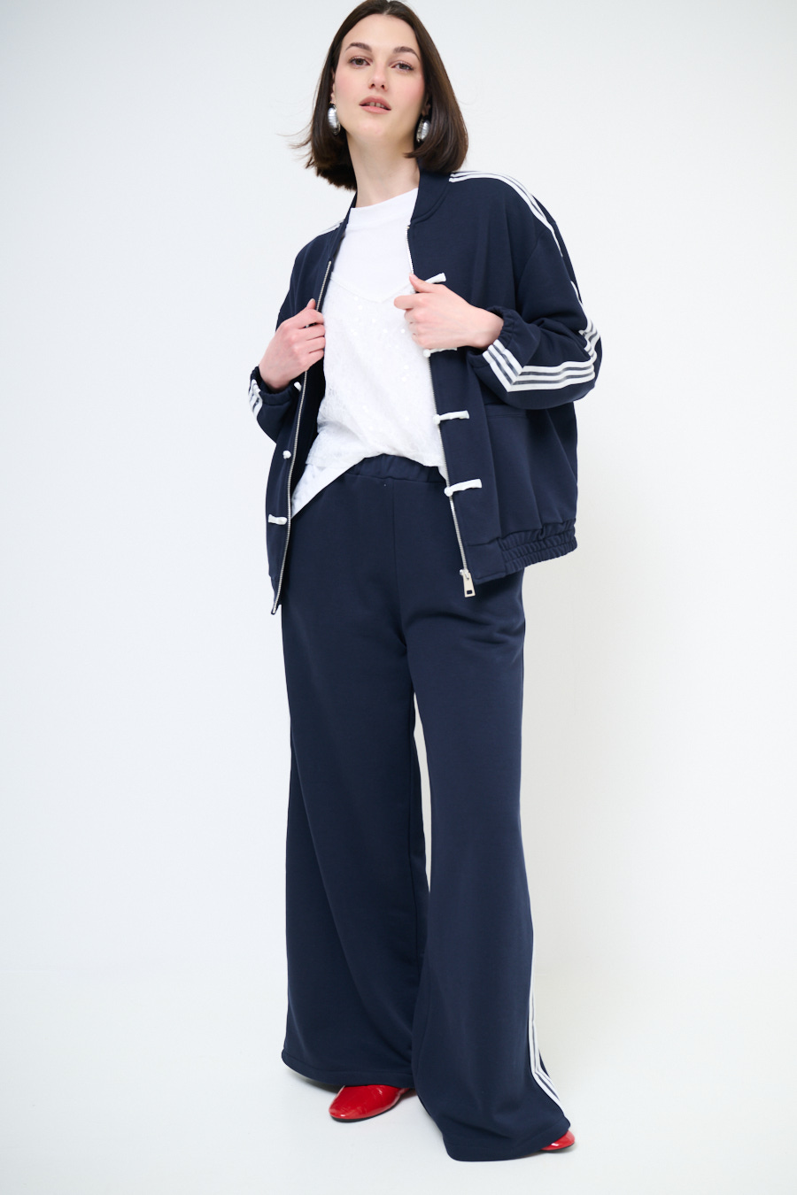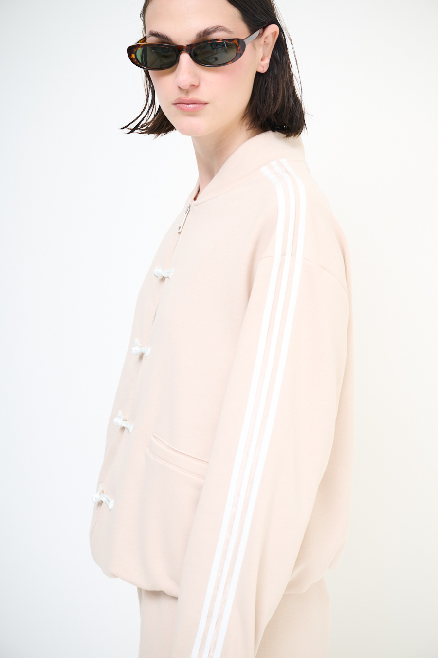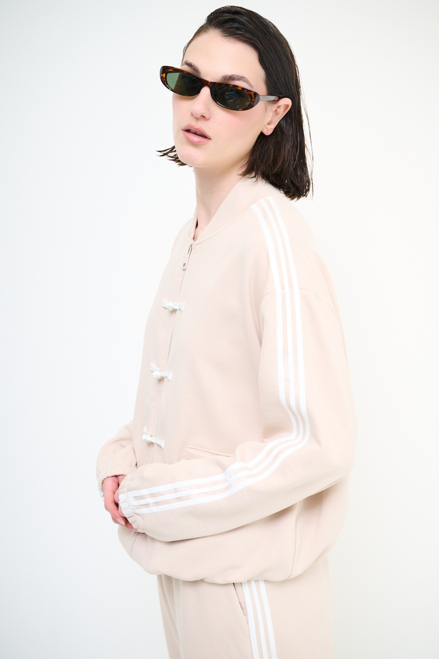 FELPA ZIP CON BANDE BIANCHE E ALAMARI