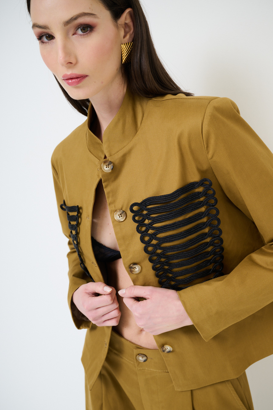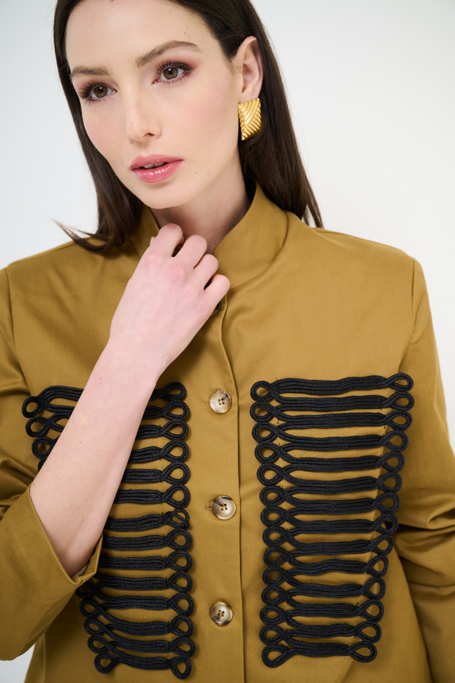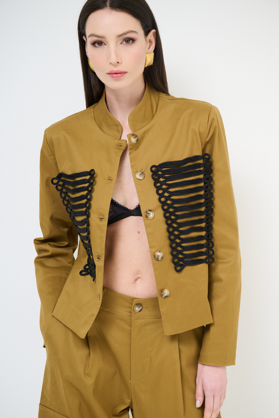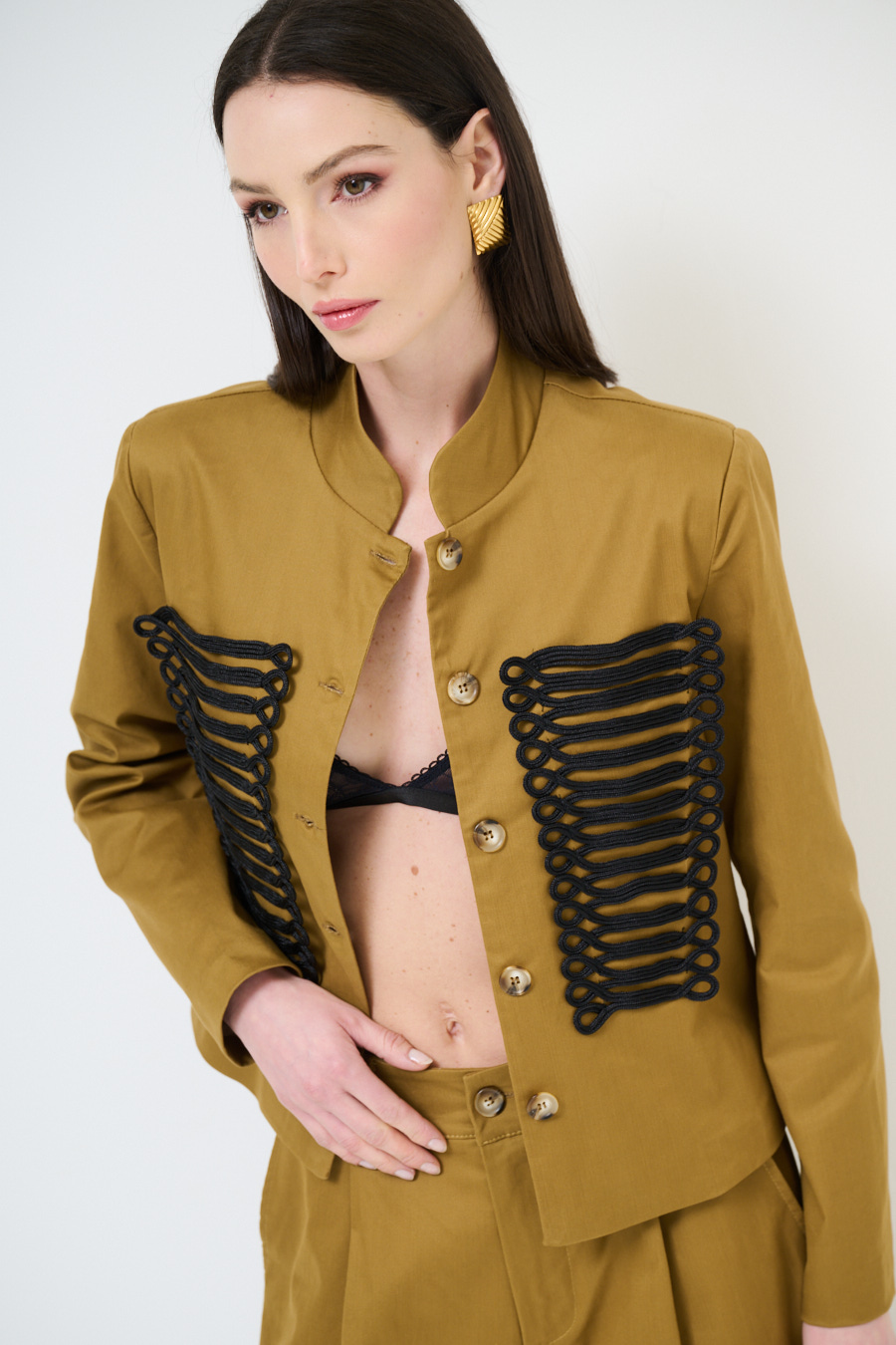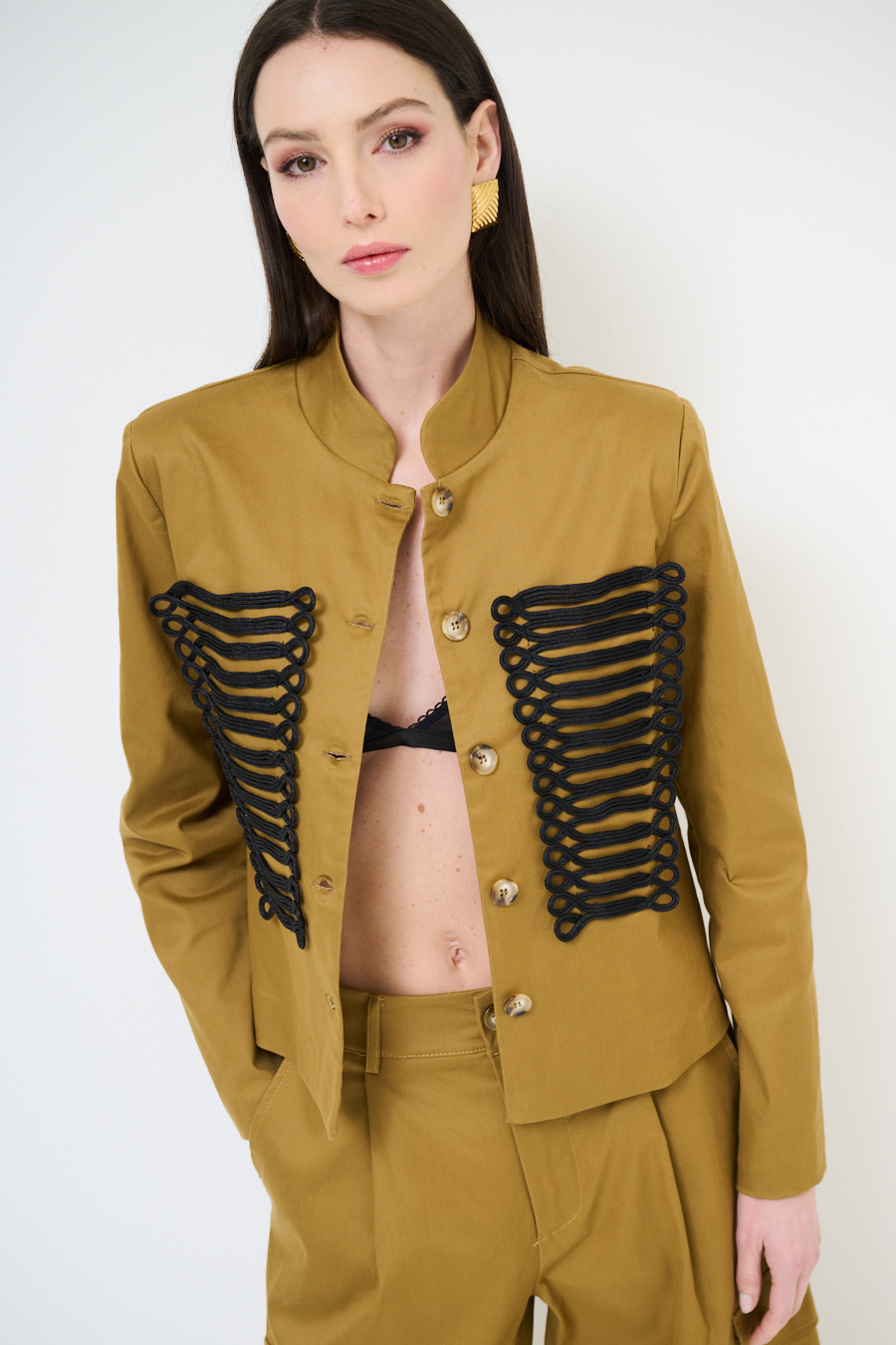 GIACCA CAVALLERIZZA CON APPL. RICAMI NERI CAMMELLO