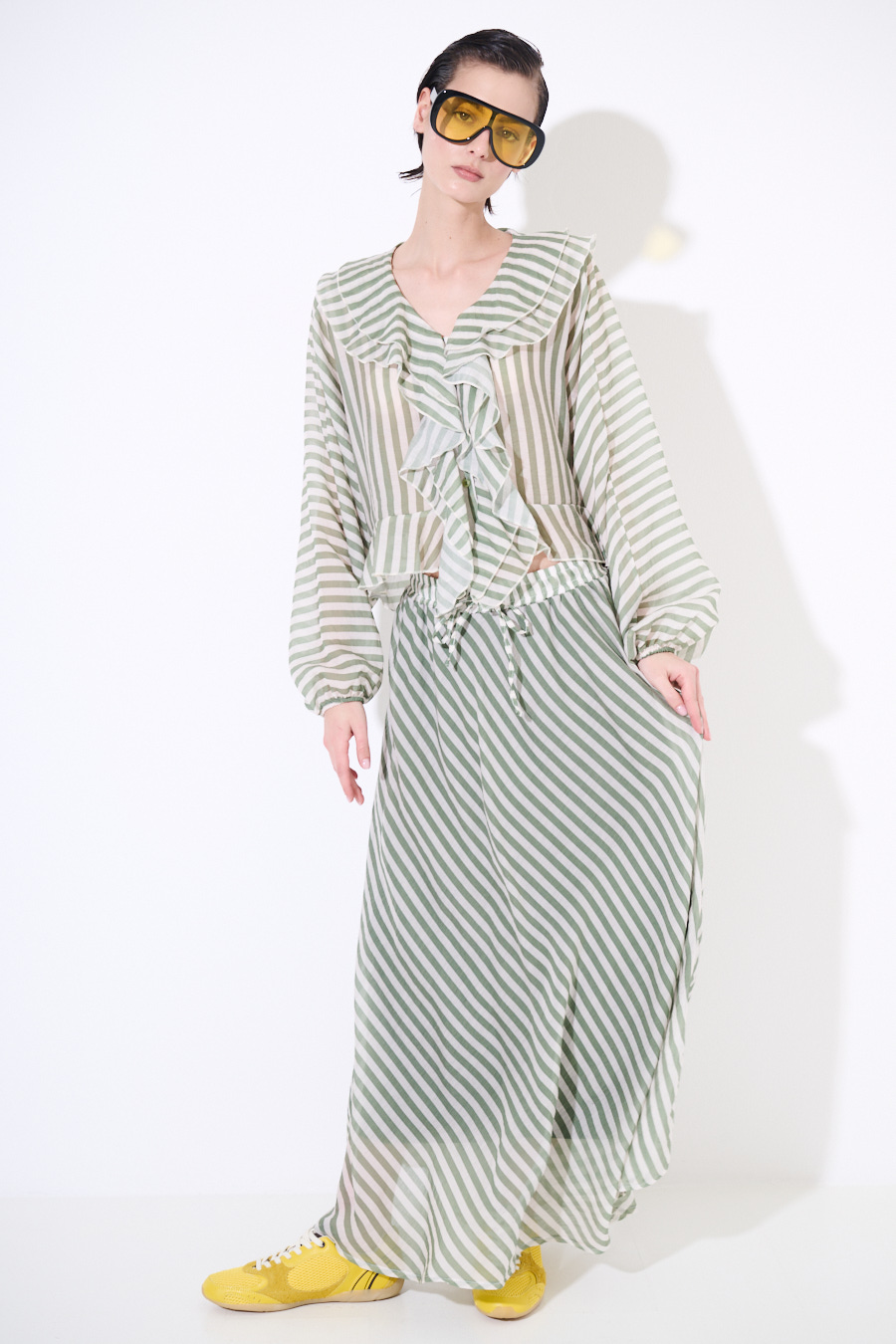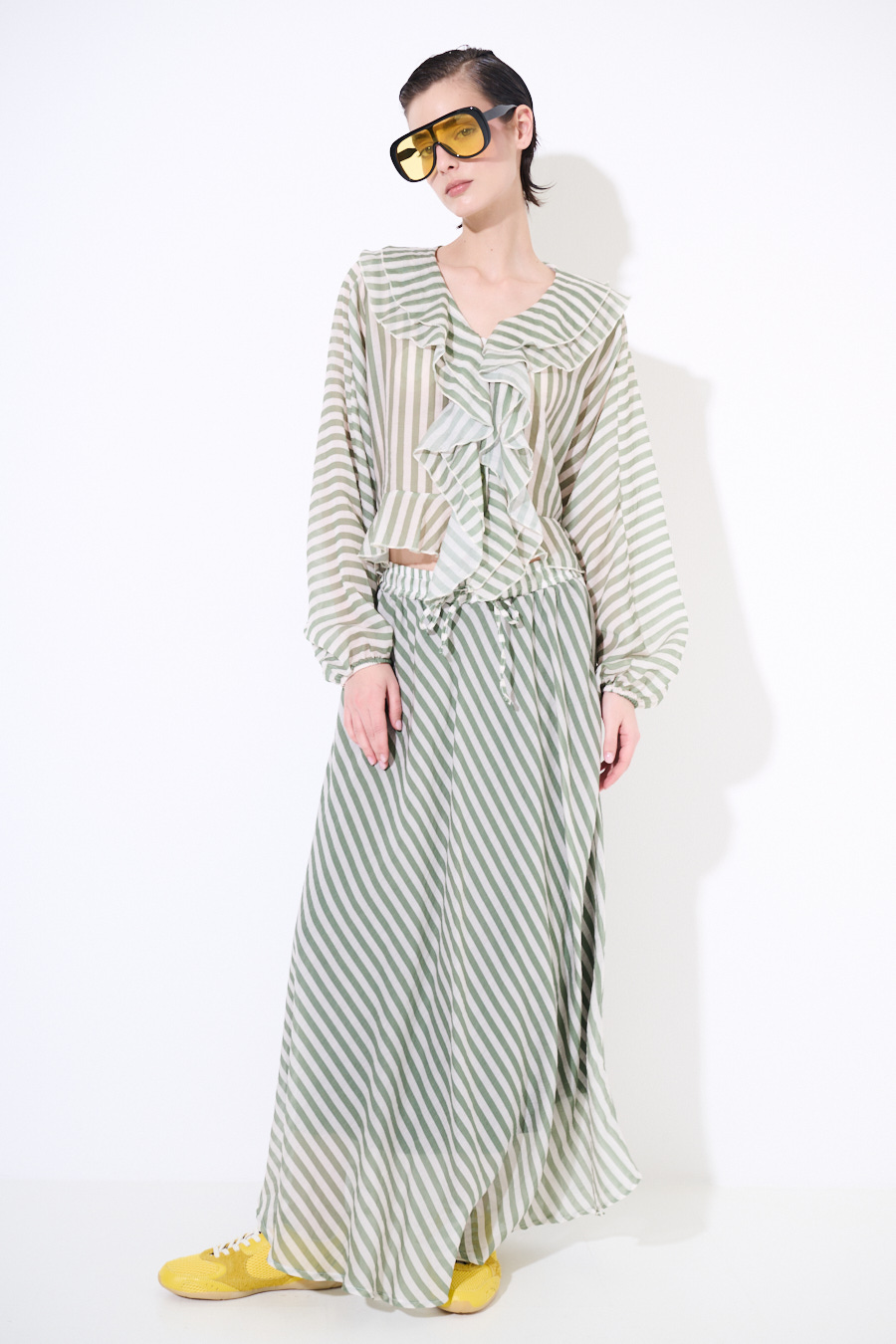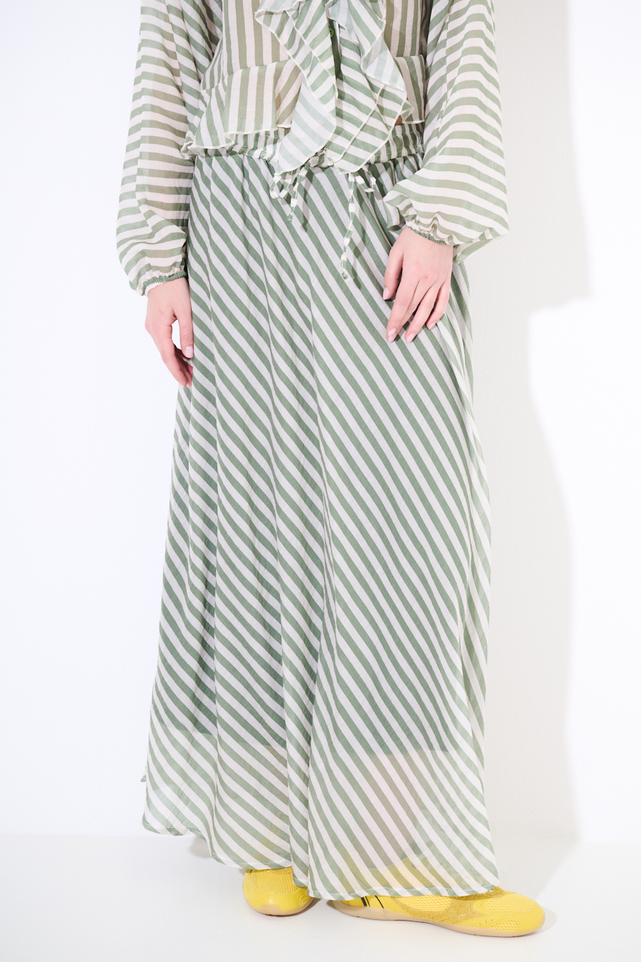 Gonna a ruota lunga a righe con fodera interna ed elastico in vita con coulisse