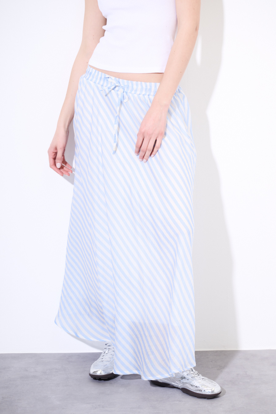 Gonna a ruota lunga a righe con fodera interna ed elastico in vita con coulisse