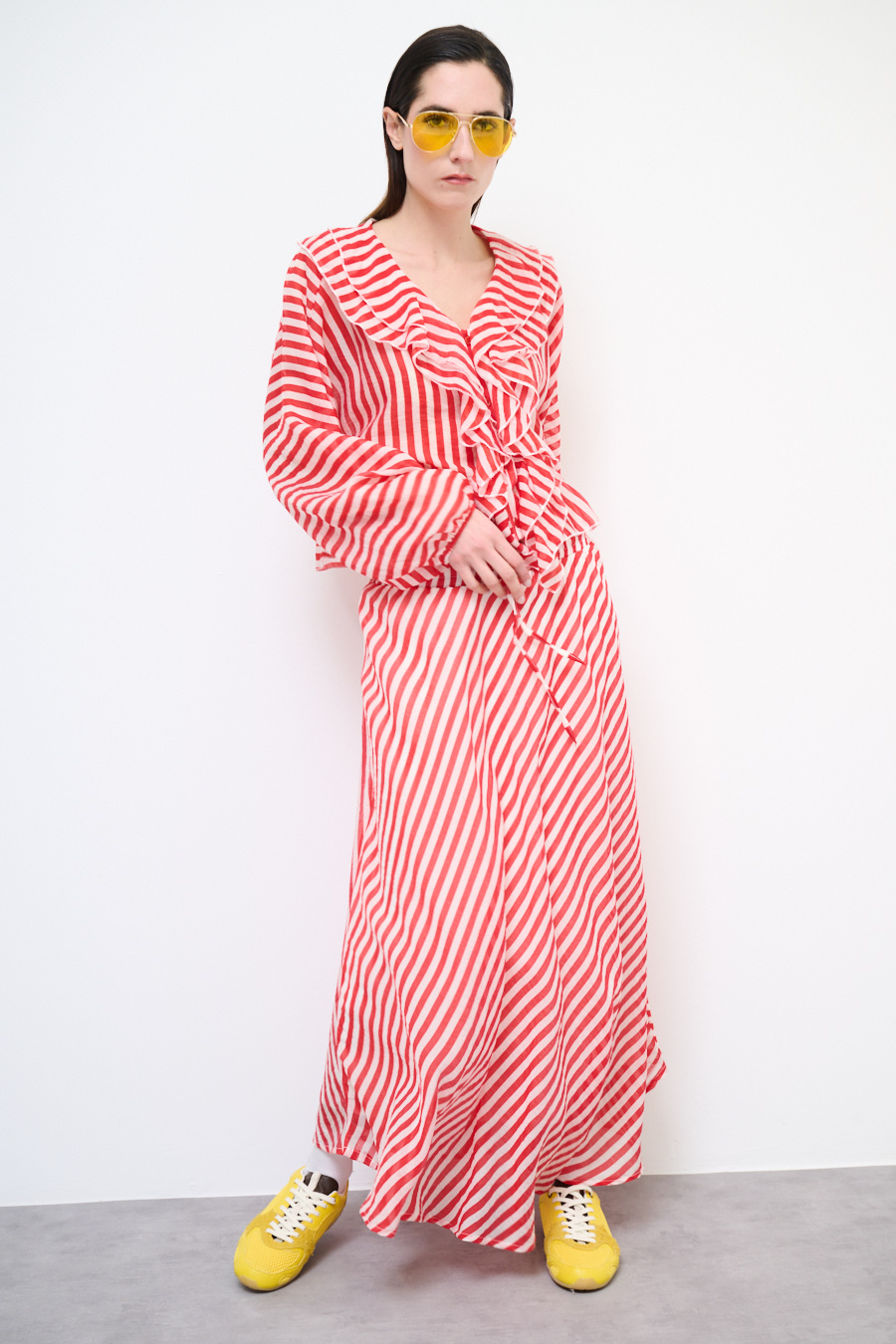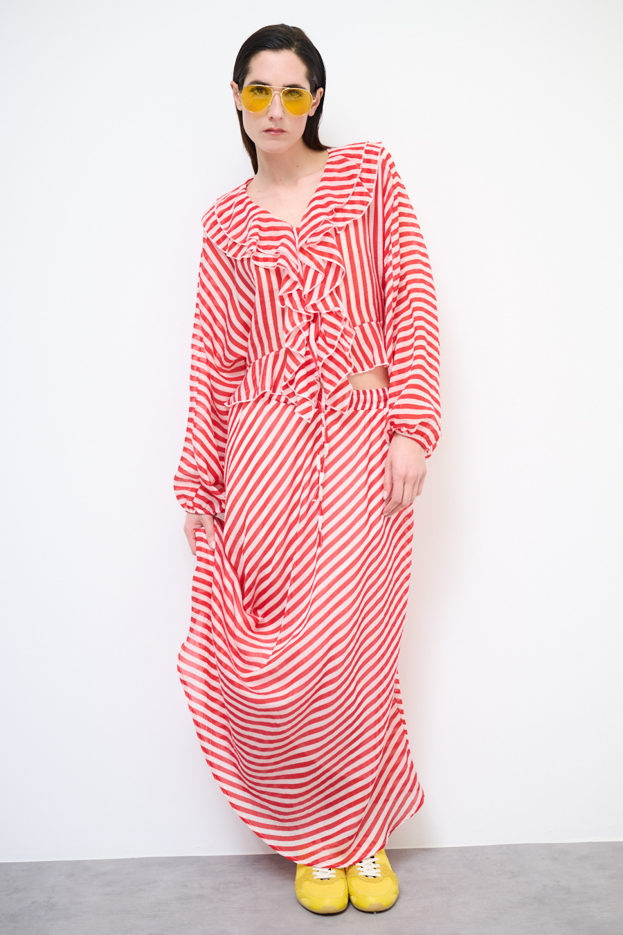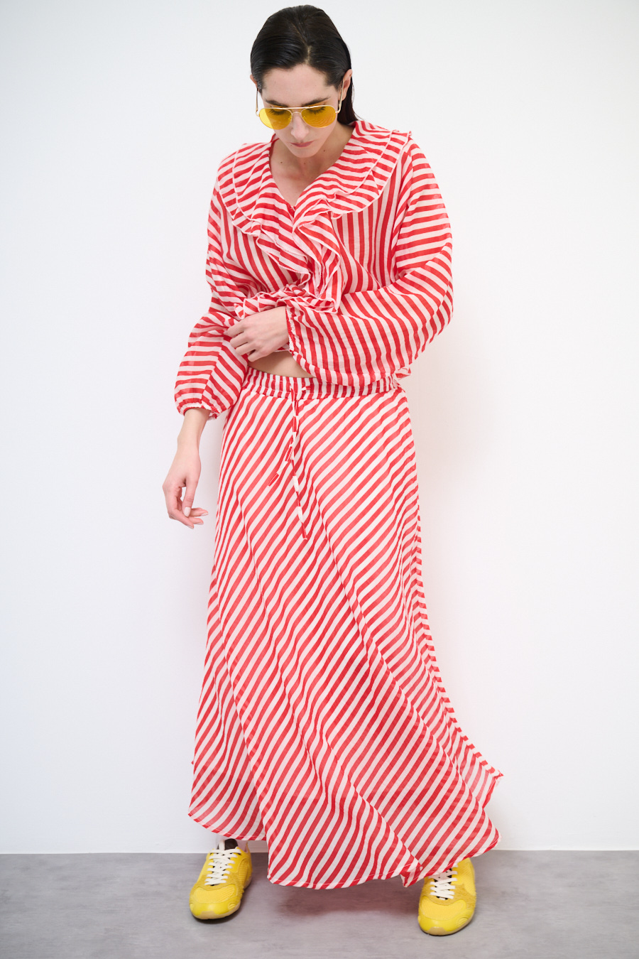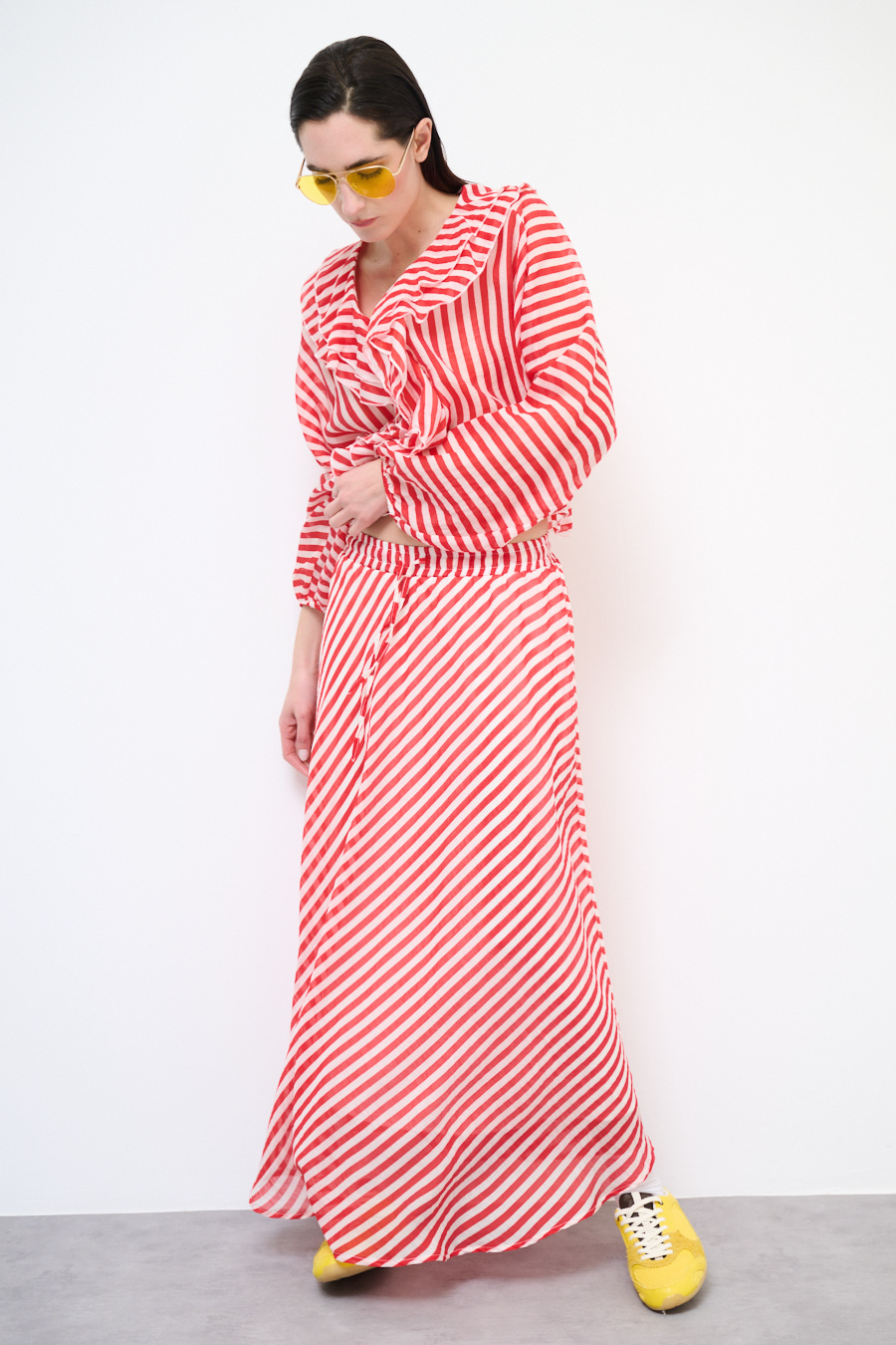 GONNA A SBIECO A RIGHE ROSSO/PANNA