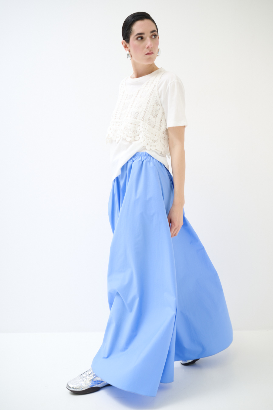 Gonna lunga svasata in cotone con tasche a filetto ed elasticizzata in vita