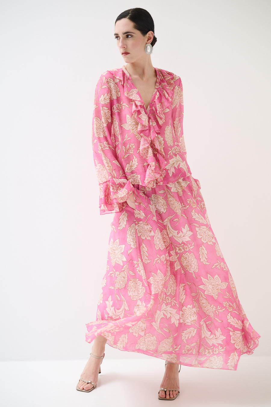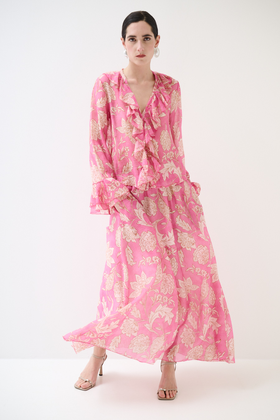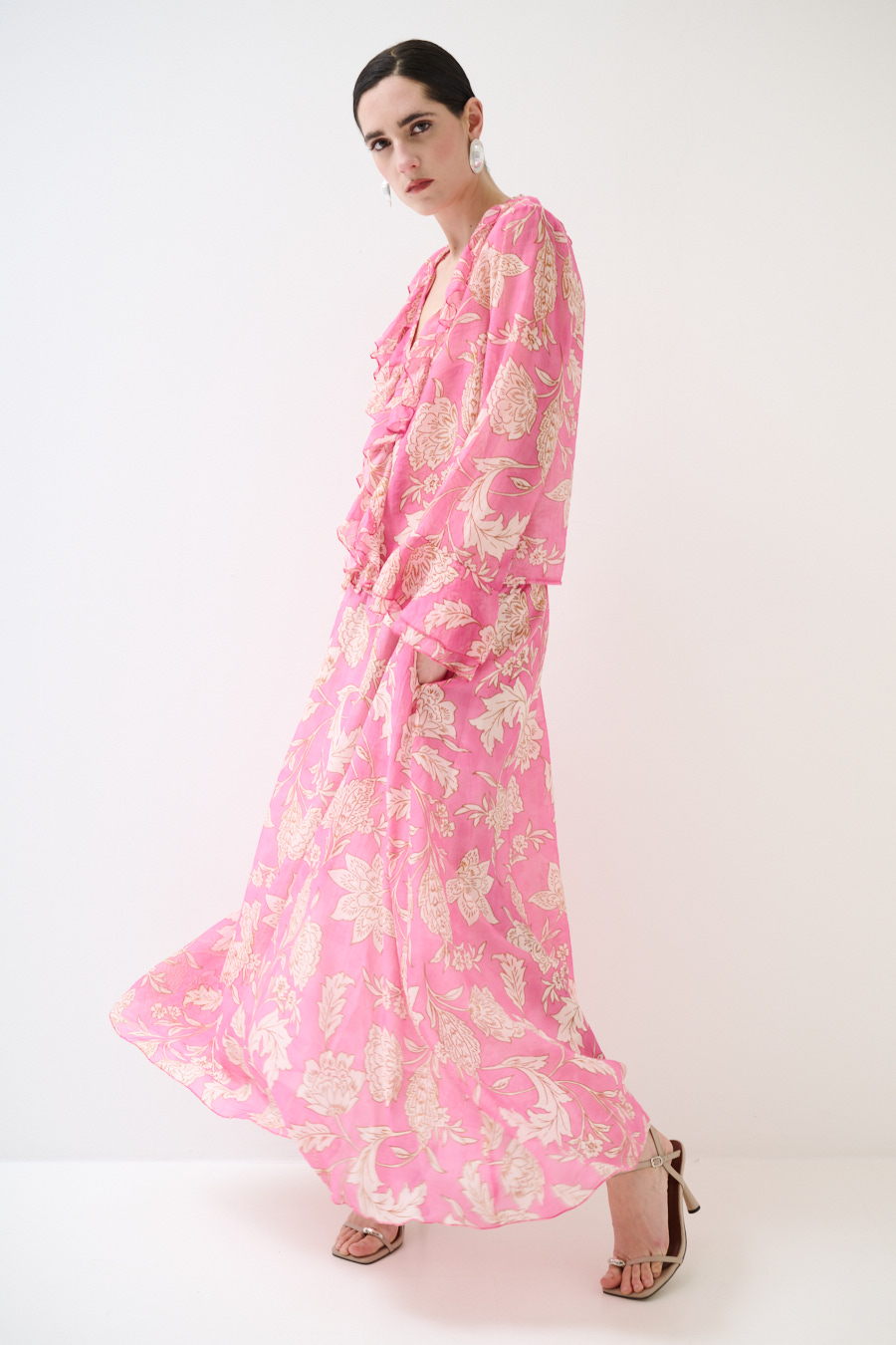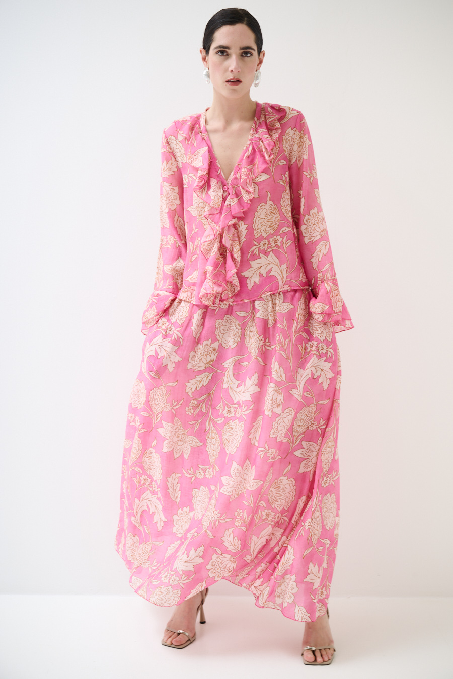GONNA LUNGA SVASATA STAMPATA ROSA