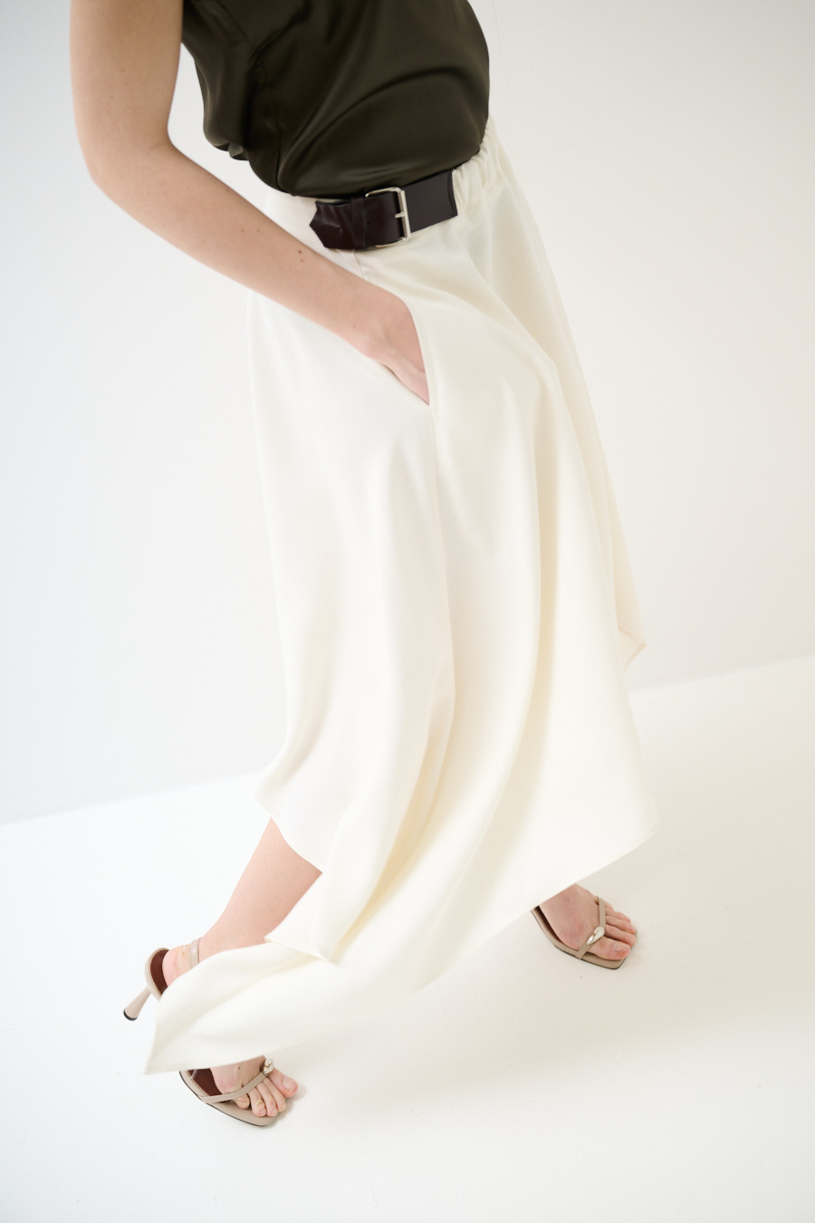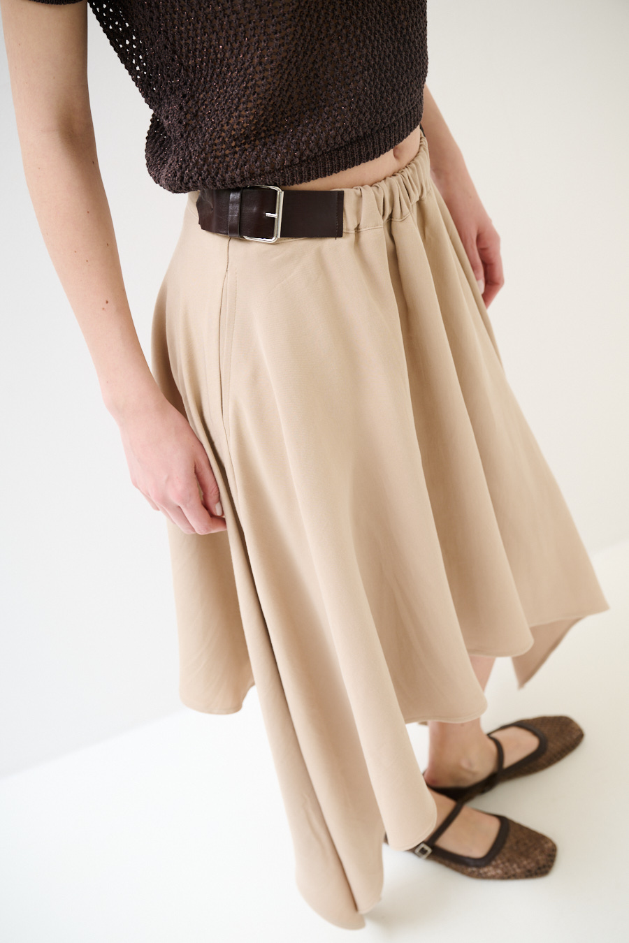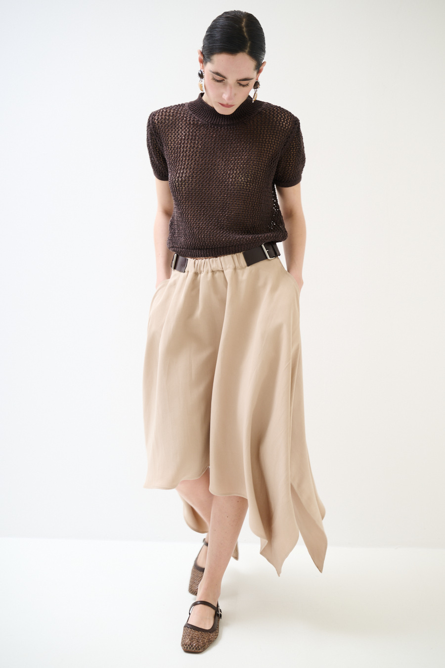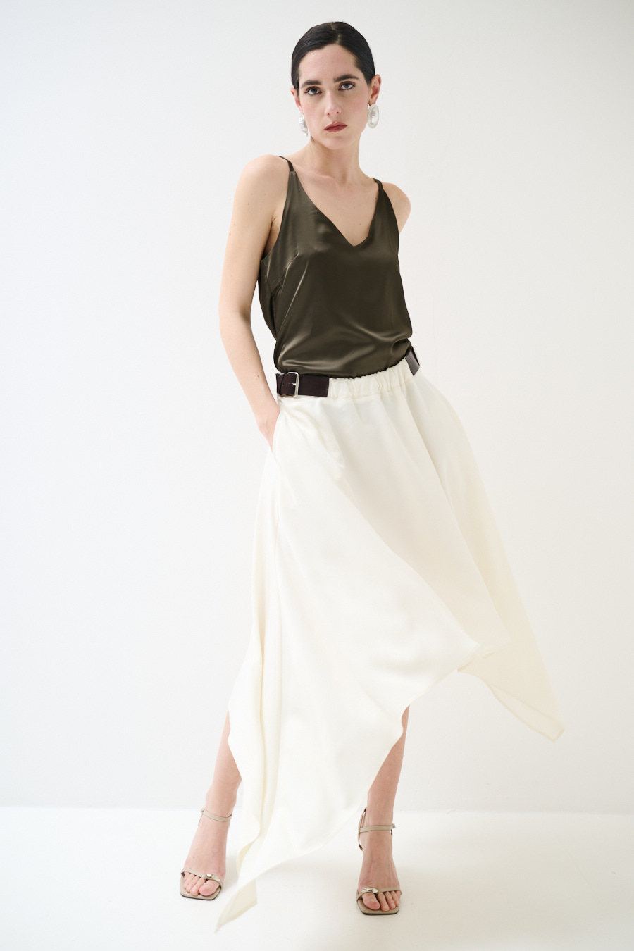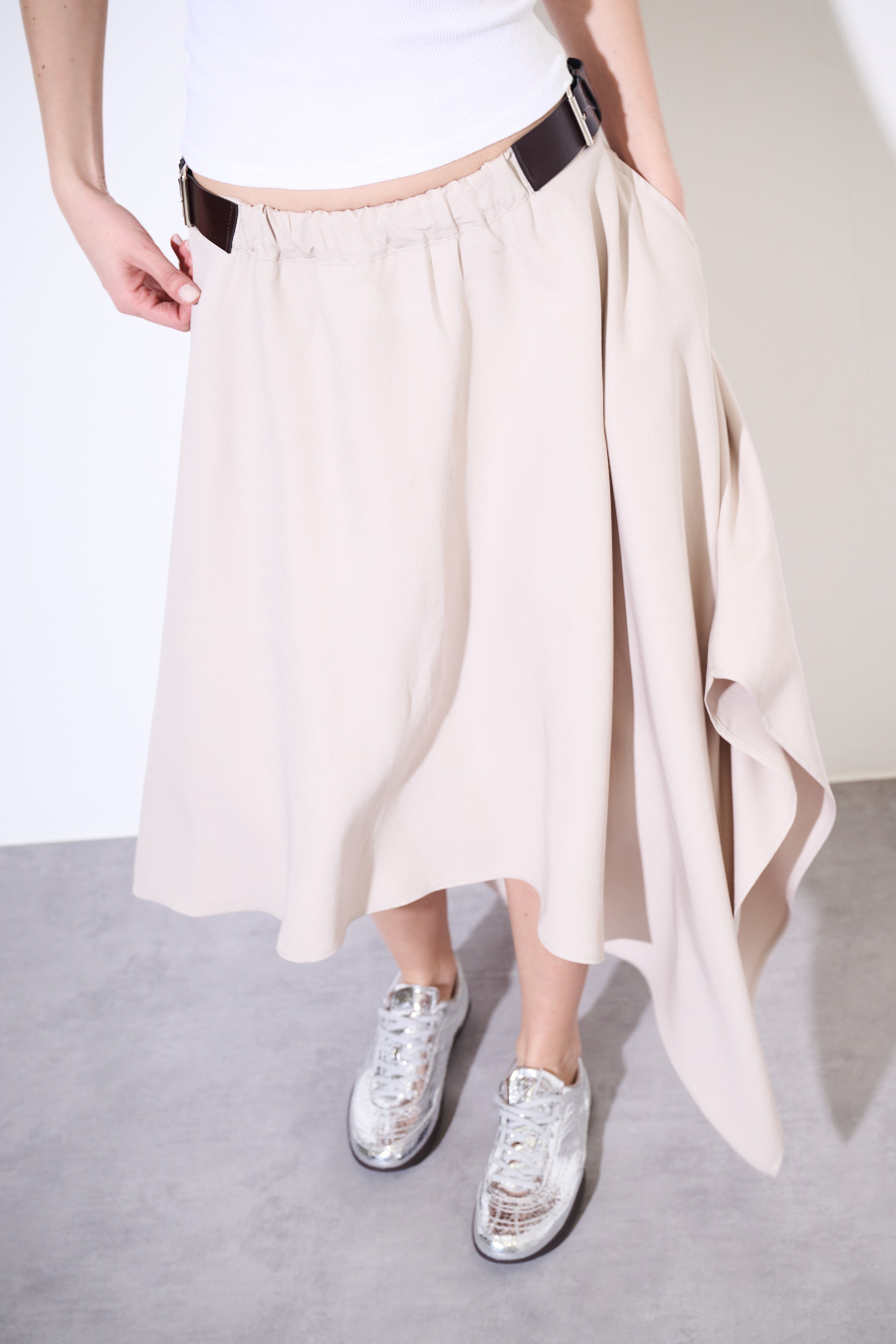 Gonna midi a punte laterali, fibbie ai lati ed elasticizzata in vita