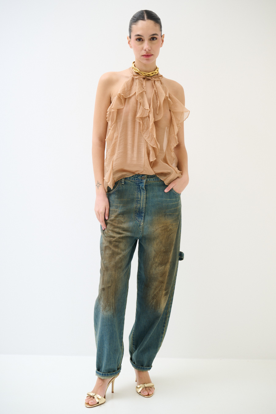 La modella è alta 1,75 cm e indossa la taglia S