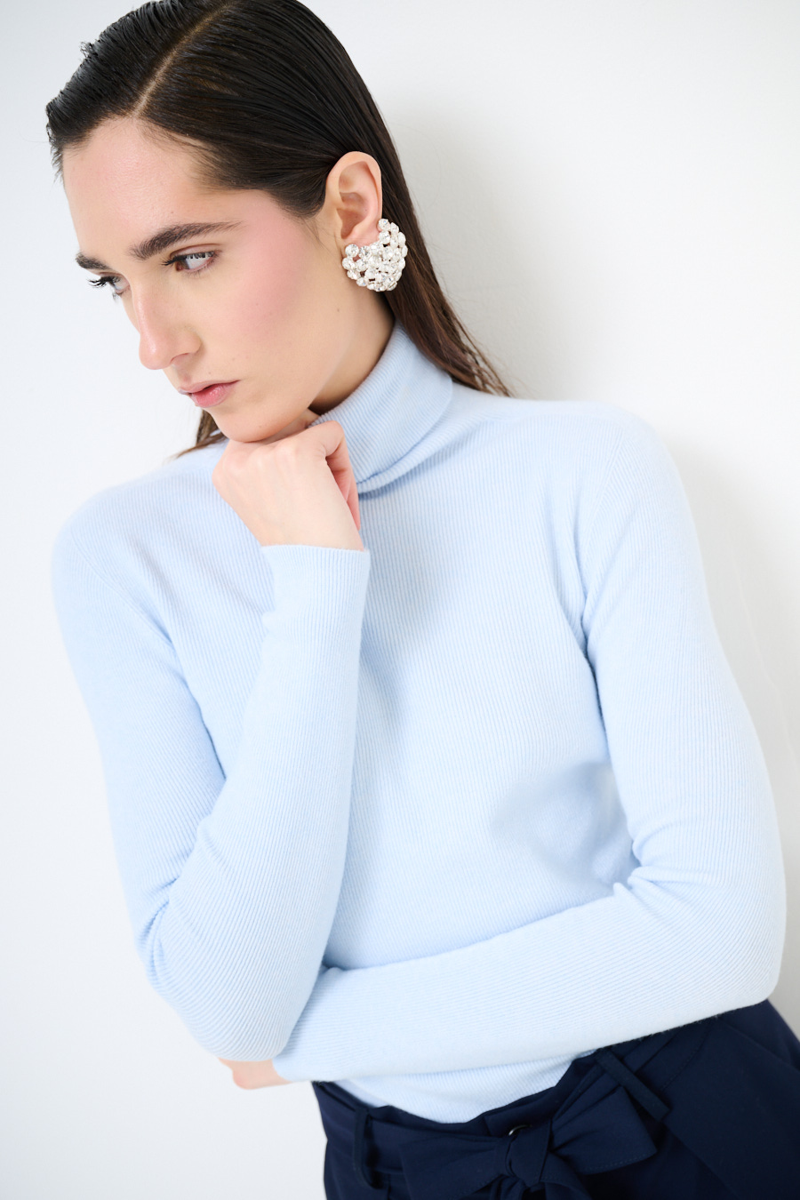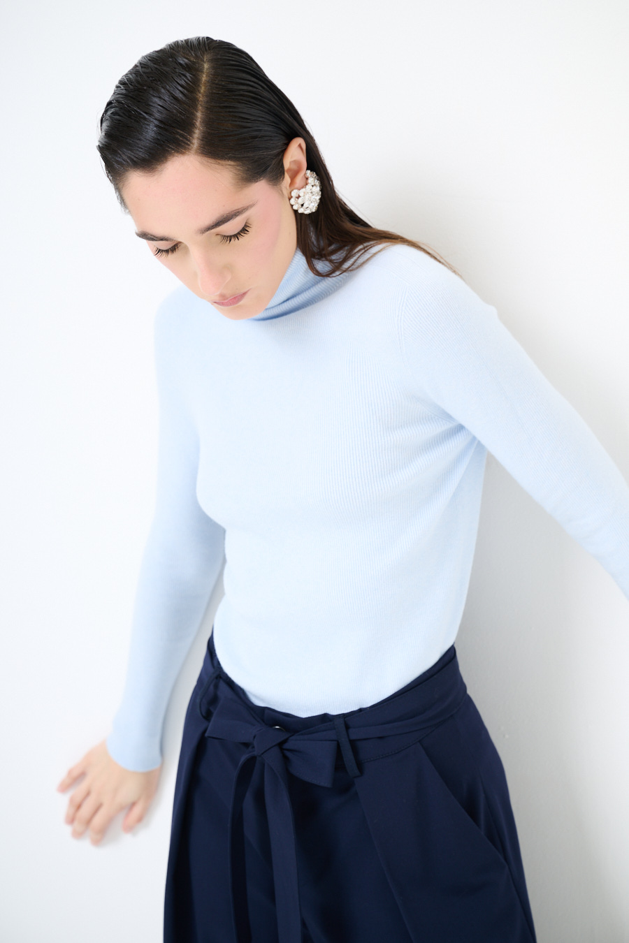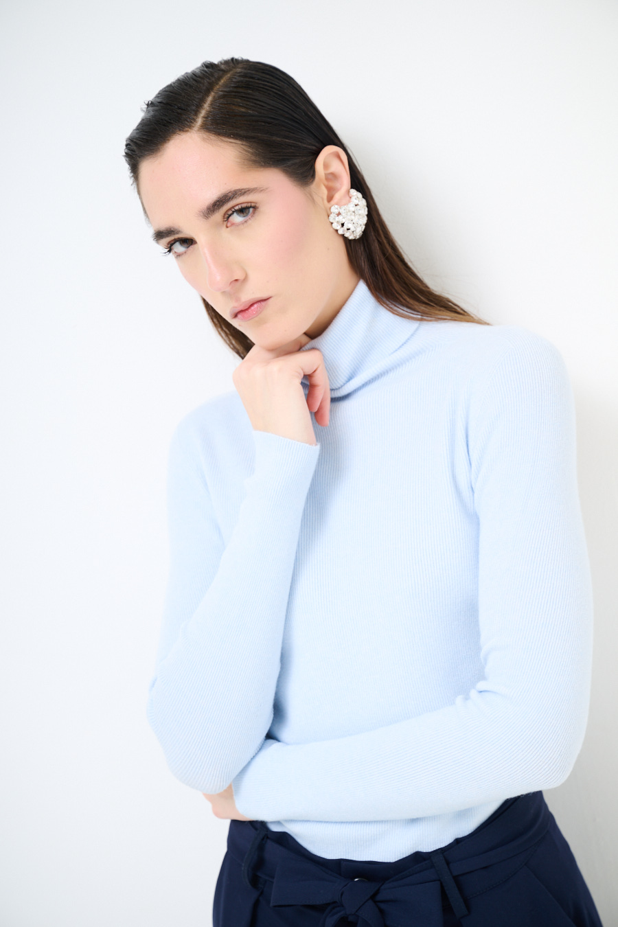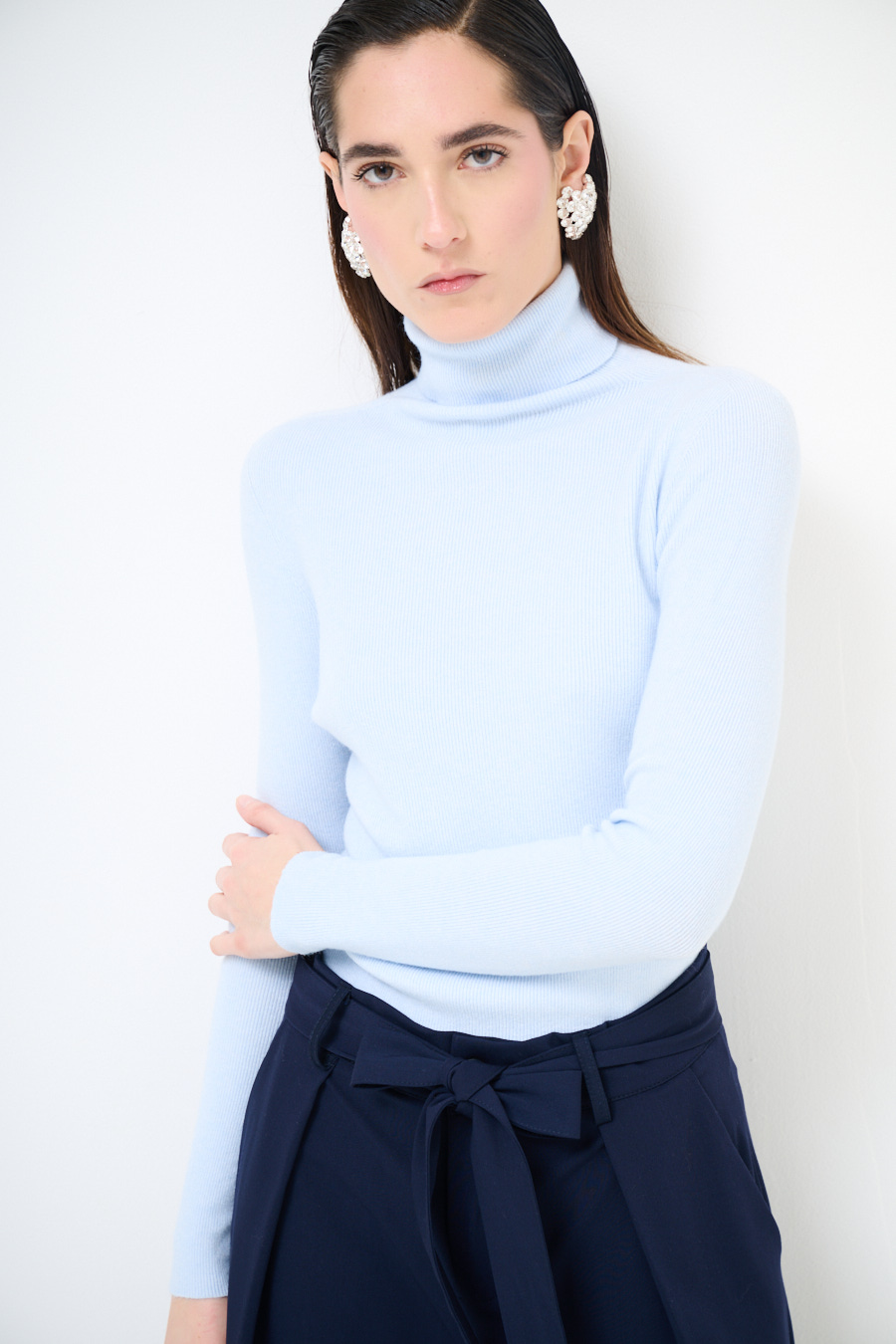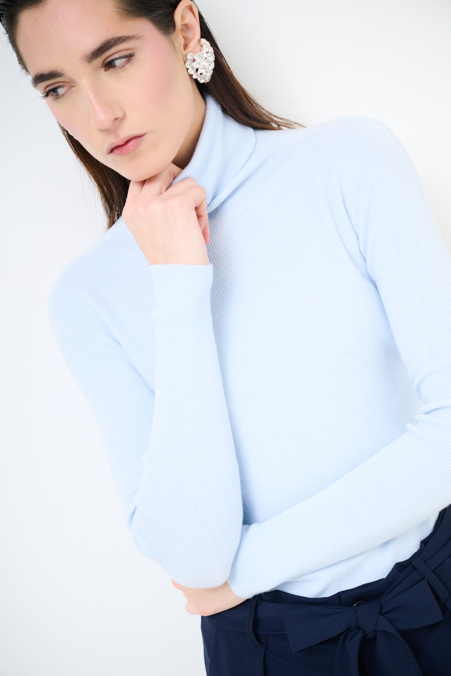 Maglia lupetto a collo alto a cpste sottili con manica lunga